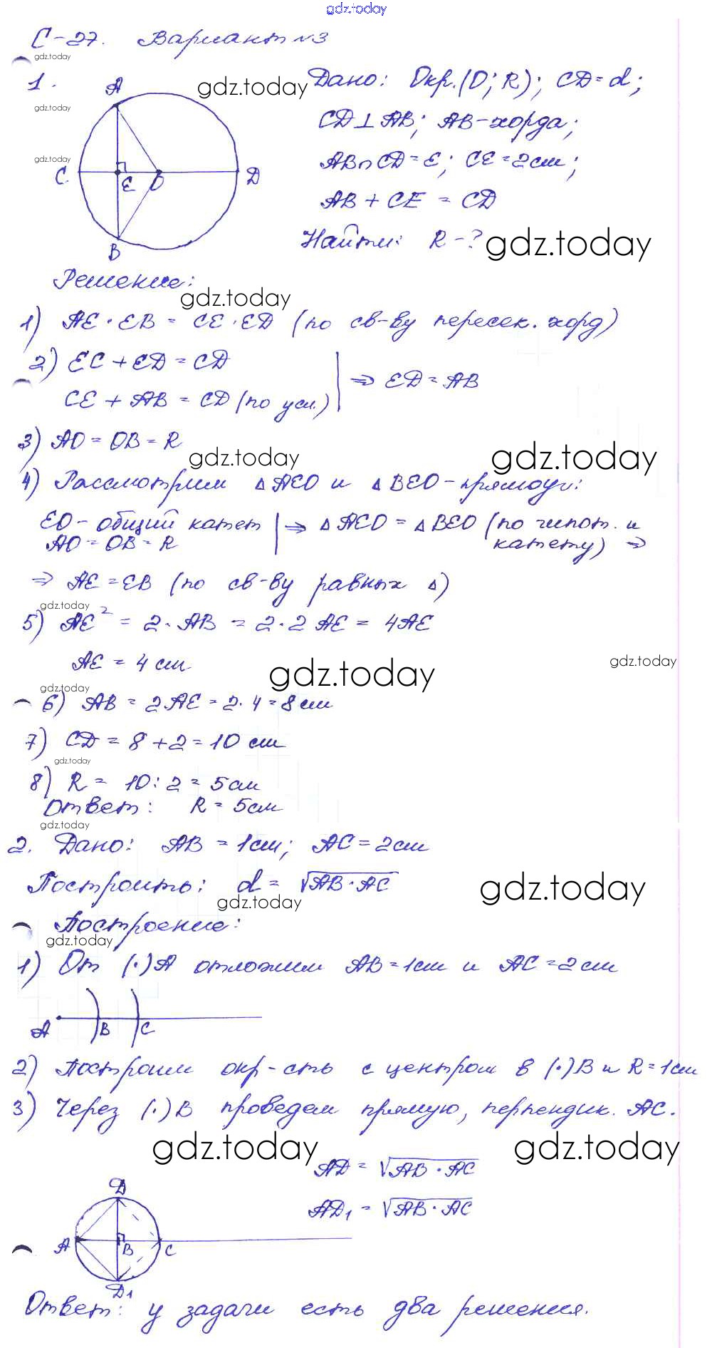 На страницах сайта gdz.today вы найдете учебный и вспомогательный материал, направленный на улучшения знаний школьной программы. ГДЗ - онлайн мир знаний СР №27. Теорема о произведении отрезков хорд Решение к самостоятельным работам вариант-3 Дидактическим материалам по Геометрии для 8 класса Зив, Мейлер Просвещение 2016