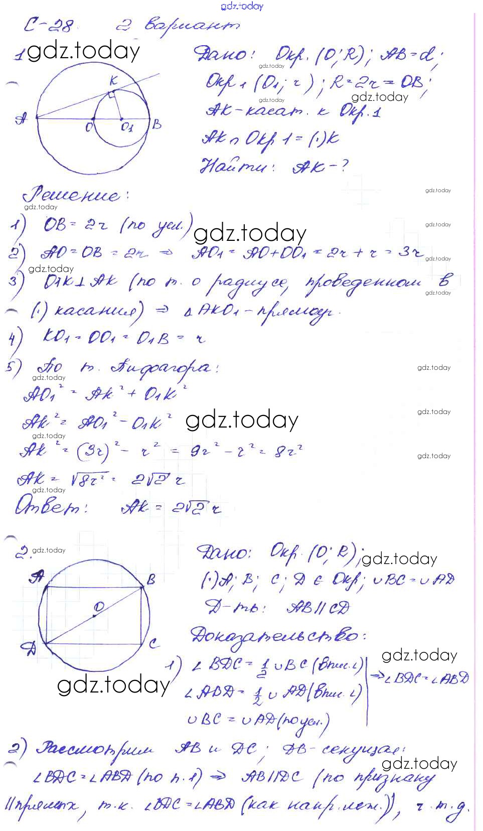 На страницах сайта gdz.today вы найдете учебный и вспомогательный материал, направленный на улучшения знаний школьной программы. ГДЗ - онлайн мир знаний СР №28. Окружность Решение к самостоятельным работам вариант-2 Дидактическим материалам по Геометрии для 8 класса Зив, Мейлер Просвещение 2016