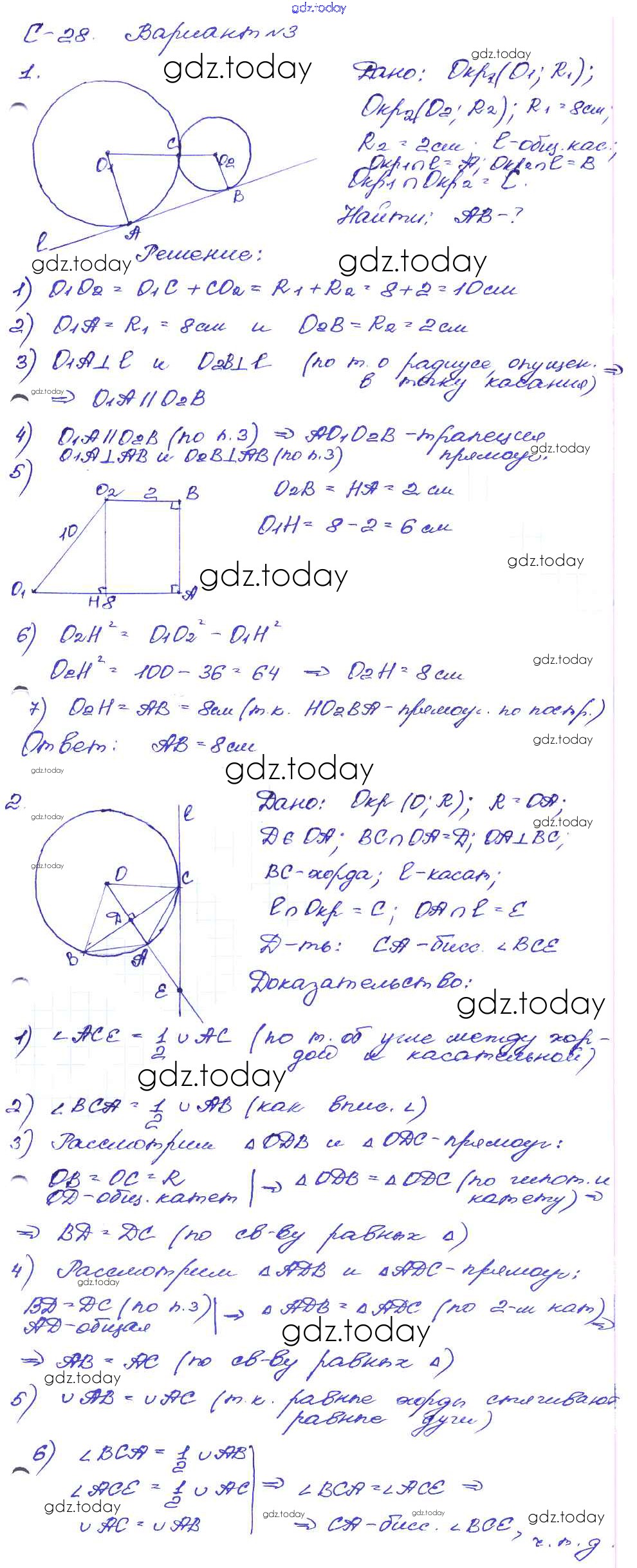 На страницах сайта gdz.today вы найдете учебный и вспомогательный материал, направленный на улучшения знаний школьной программы. ГДЗ - онлайн мир знаний СР №28. Окружность Решение к самостоятельным работам вариант-3 Дидактическим материалам по Геометрии для 8 класса Зив, Мейлер Просвещение 2016