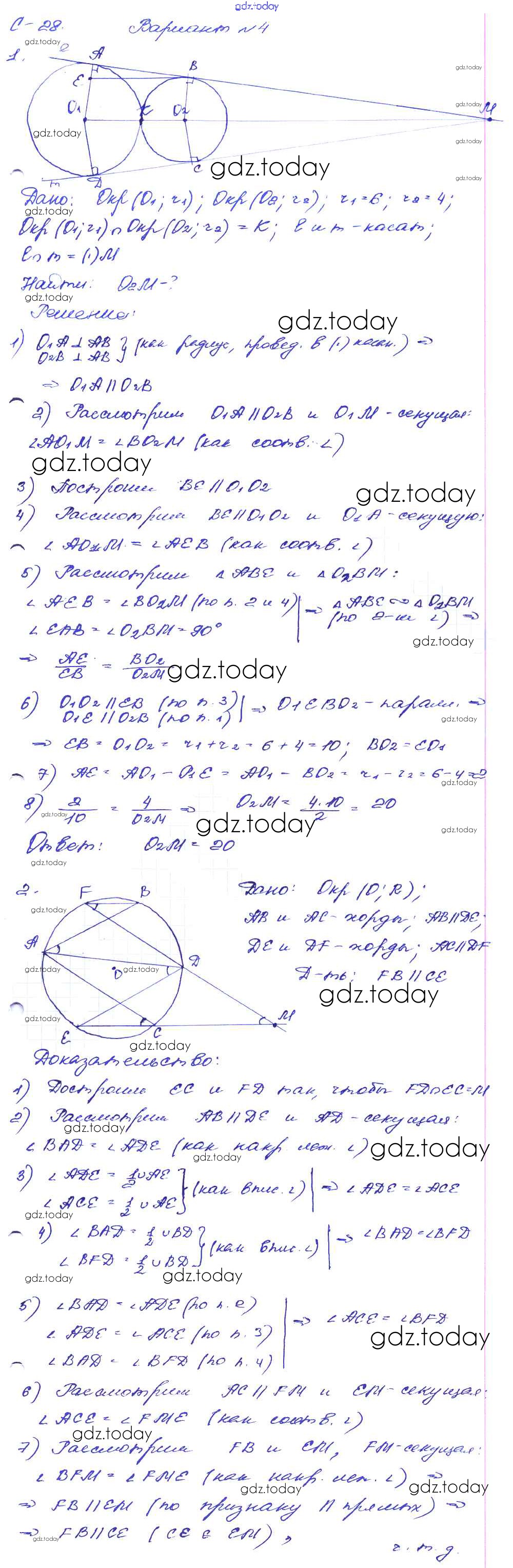 На страницах сайта gdz.today вы найдете учебный и вспомогательный материал, направленный на улучшения знаний школьной программы. ГДЗ - онлайн мир знаний СР №28. Окружность Решение к самостоятельным работам вариант-4 Дидактическим материалам по Геометрии для 8 класса Зив, Мейлер Просвещение 2016