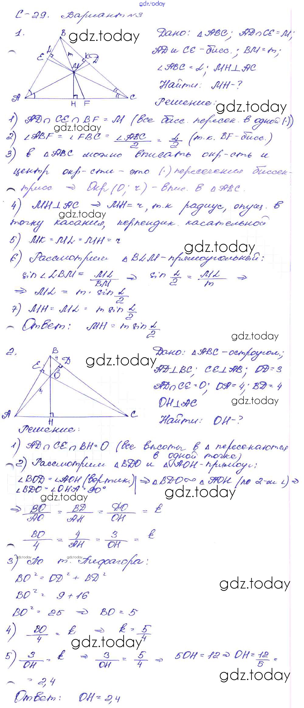 На страницах сайта gdz.today вы найдете учебный и вспомогательный материал, направленный на улучшения знаний школьной программы. ГДЗ - онлайн мир знаний СР №29. Четыре замечательные точки треугольника Решение к самостоятельным работам вариант-3 Дидактическим материалам по Геометрии для 8 класса Зив, Мейлер Просвещение 2016