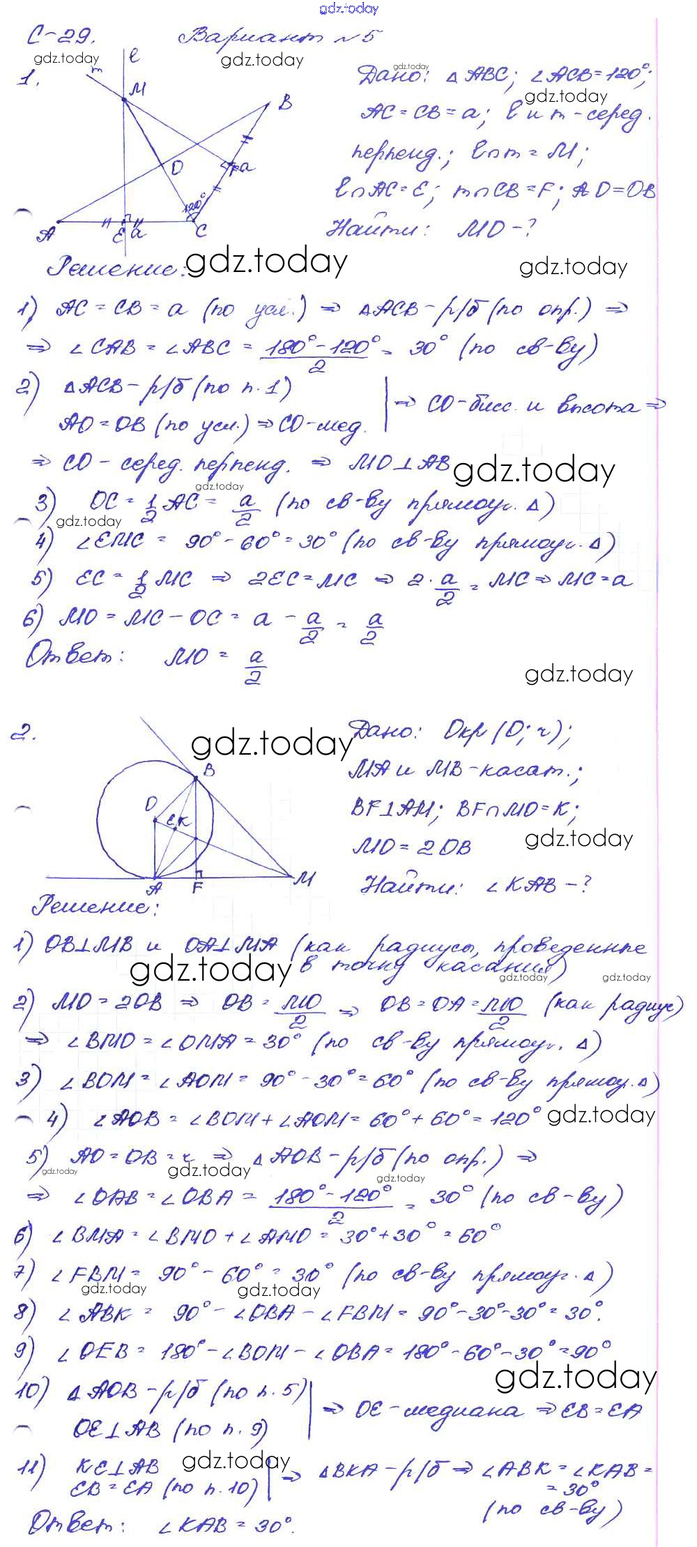 На страницах сайта gdz.today вы найдете учебный и вспомогательный материал, направленный на улучшения знаний школьной программы. ГДЗ - онлайн мир знаний СР №29. Четыре замечательные точки треугольника Решение к самостоятельным работам вариант-5 Дидактическим материалам по Геометрии для 8 класса Зив, Мейлер Просвещение 2016