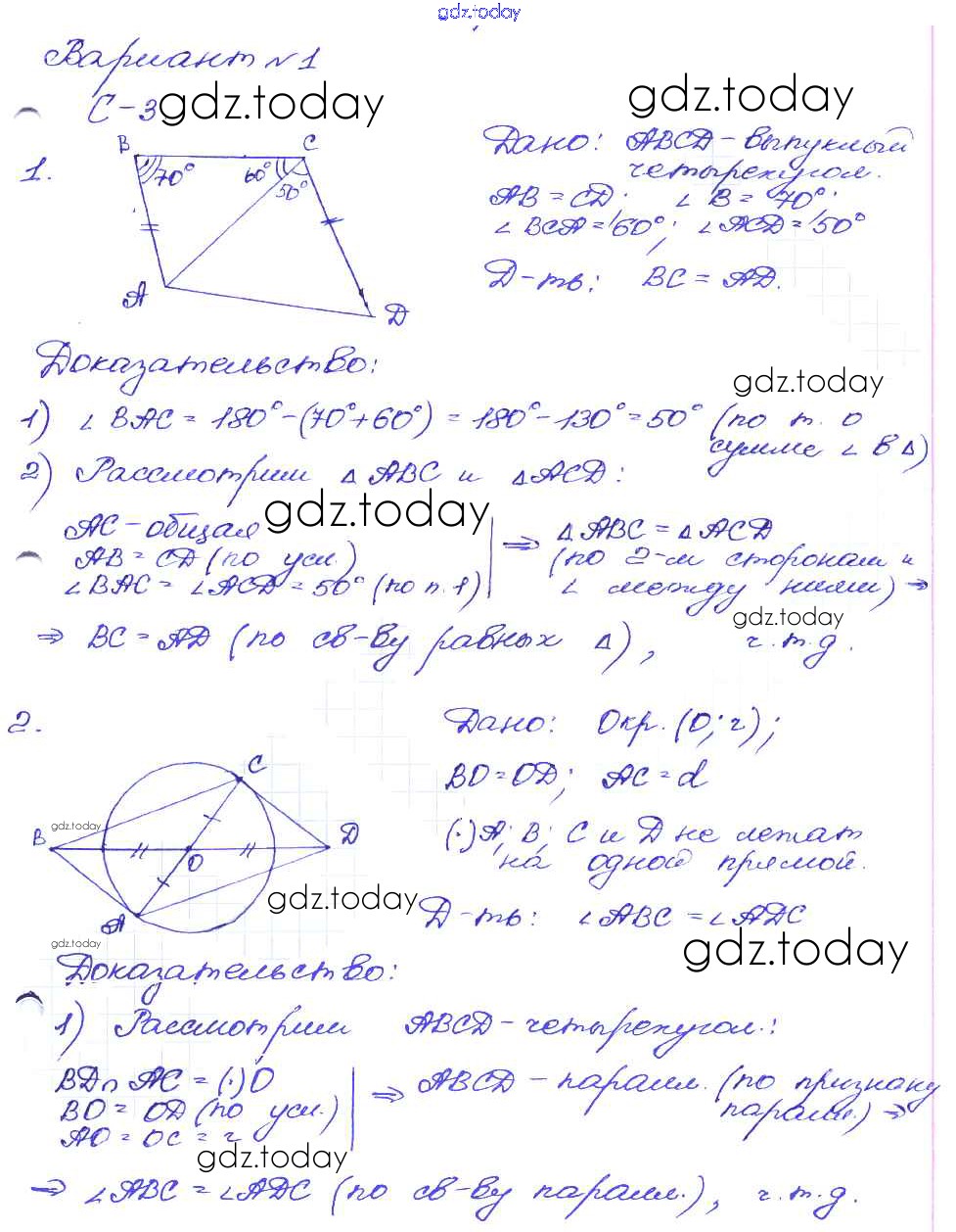 На страницах сайта gdz.today вы найдете учебный и вспомогательный материал, направленный на улучшения знаний школьной программы. ГДЗ - онлайн мир знаний СР №3. Признаки параллелограмма Решение к самостоятельным работам вариант-1 Дидактическим материалам по Геометрии для 8 класса Зив, Мейлер Просвещение 2016