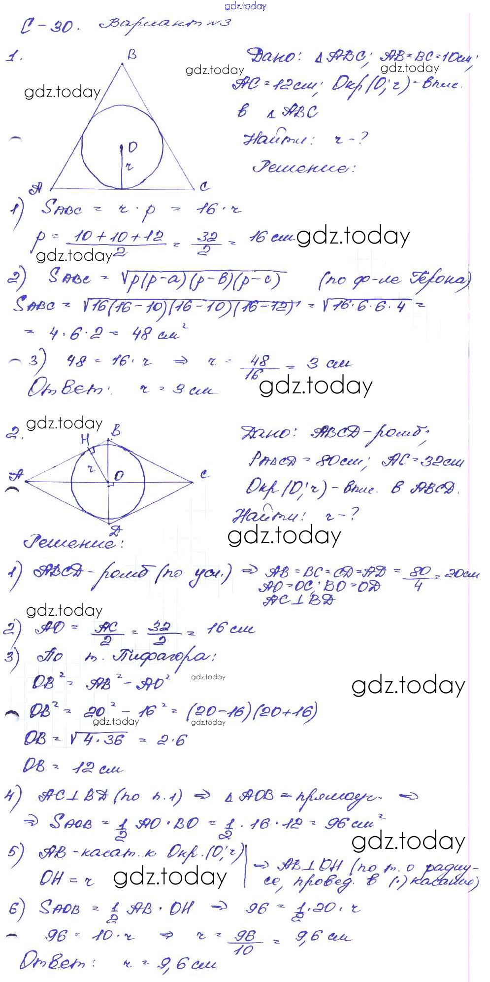 На страницах сайта gdz.today вы найдете учебный и вспомогательный материал, направленный на улучшения знаний школьной программы. ГДЗ - онлайн мир знаний СР №30. Вписанная окружность Решение к самостоятельным работам вариант-3 Дидактическим материалам по Геометрии для 8 класса Зив, Мейлер Просвещение 2016
