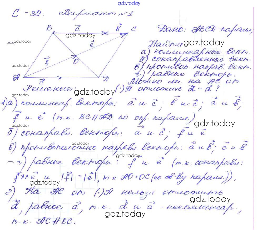 На страницах сайта gdz.today вы найдете учебный и вспомогательный материал, направленный на улучшения знаний школьной программы. ГДЗ - онлайн мир знаний СР №32. Понятие вектора Решение к самостоятельным работам вариант-1 Дидактическим материалам по Геометрии для 8 класса Зив, Мейлер Просвещение 2016