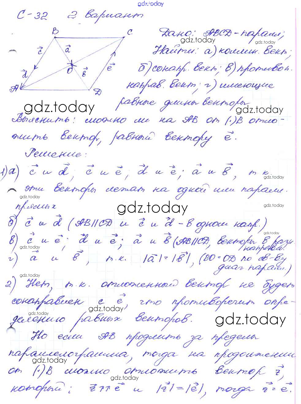 На страницах сайта gdz.today вы найдете учебный и вспомогательный материал, направленный на улучшения знаний школьной программы. ГДЗ - онлайн мир знаний СР №32. Понятие вектора Решение к самостоятельным работам вариант-2 Дидактическим материалам по Геометрии для 8 класса Зив, Мейлер Просвещение 2016