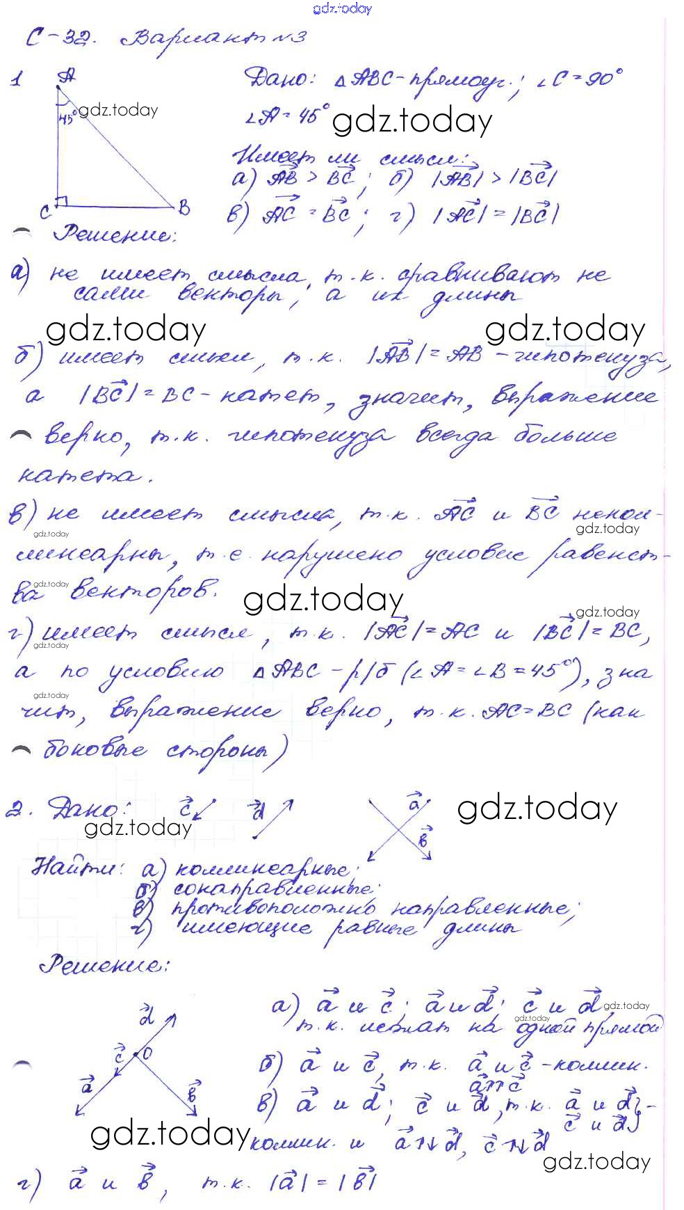 На страницах сайта gdz.today вы найдете учебный и вспомогательный материал, направленный на улучшения знаний школьной программы. ГДЗ - онлайн мир знаний СР №32. Понятие вектора Решение к самостоятельным работам вариант-3 Дидактическим материалам по Геометрии для 8 класса Зив, Мейлер Просвещение 2016