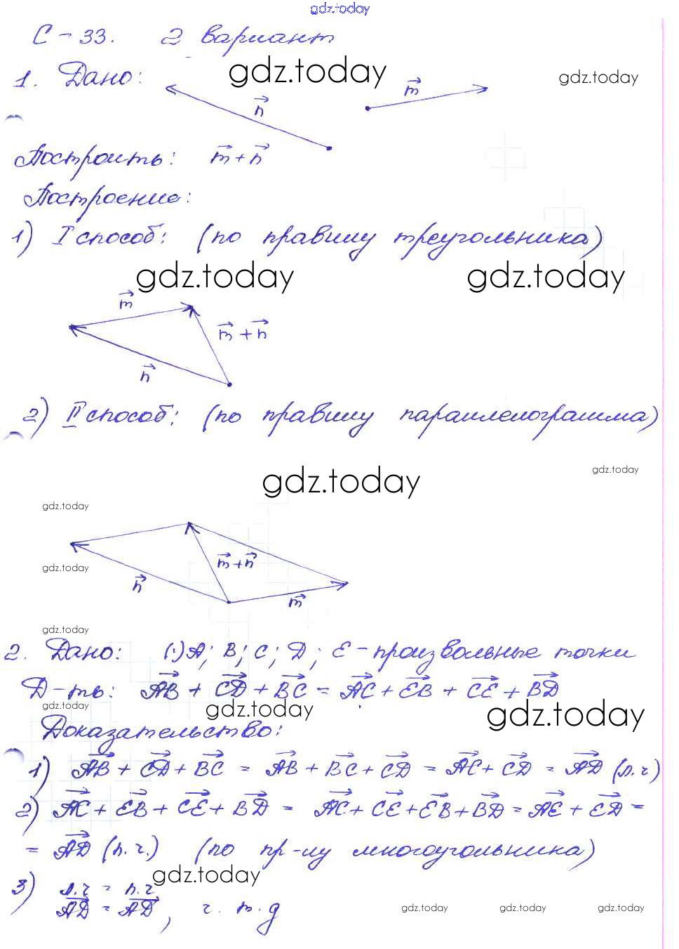 На страницах сайта gdz.today вы найдете учебный и вспомогательный материал, направленный на улучшения знаний школьной программы. ГДЗ - онлайн мир знаний СР №33. Сложение векторов Решение к самостоятельным работам вариант-2 Дидактическим материалам по Геометрии для 8 класса Зив, Мейлер Просвещение 2016