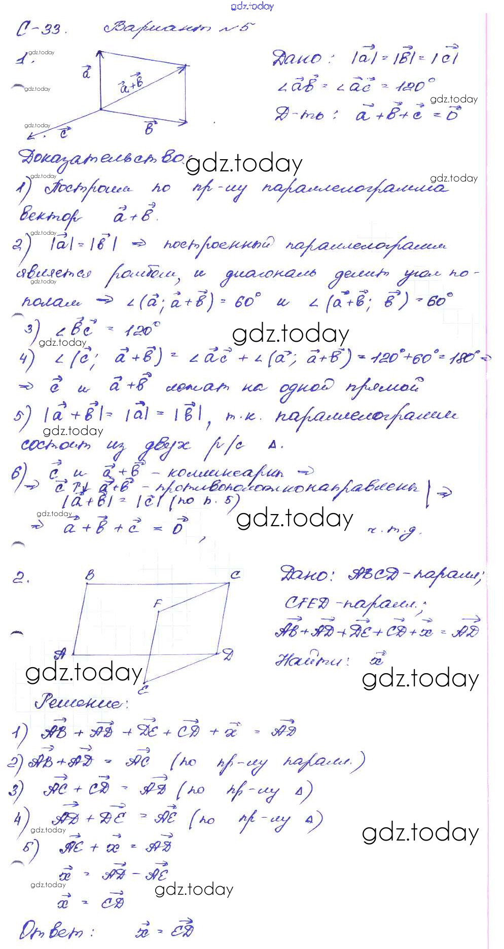 На страницах сайта gdz.today вы найдете учебный и вспомогательный материал, направленный на улучшения знаний школьной программы. ГДЗ - онлайн мир знаний СР №33. Сложение векторов Решение к самостоятельным работам вариант-5 Дидактическим материалам по Геометрии для 8 класса Зив, Мейлер Просвещение 2016