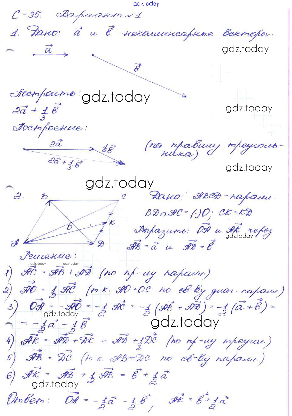 Ответы к СР №35. Умножение вектора на число Решение к самостоятельным работам вариант-1 Дидактическим материалам по Геометрии для 8 класса Зив, Мейлер Просвещение 2016