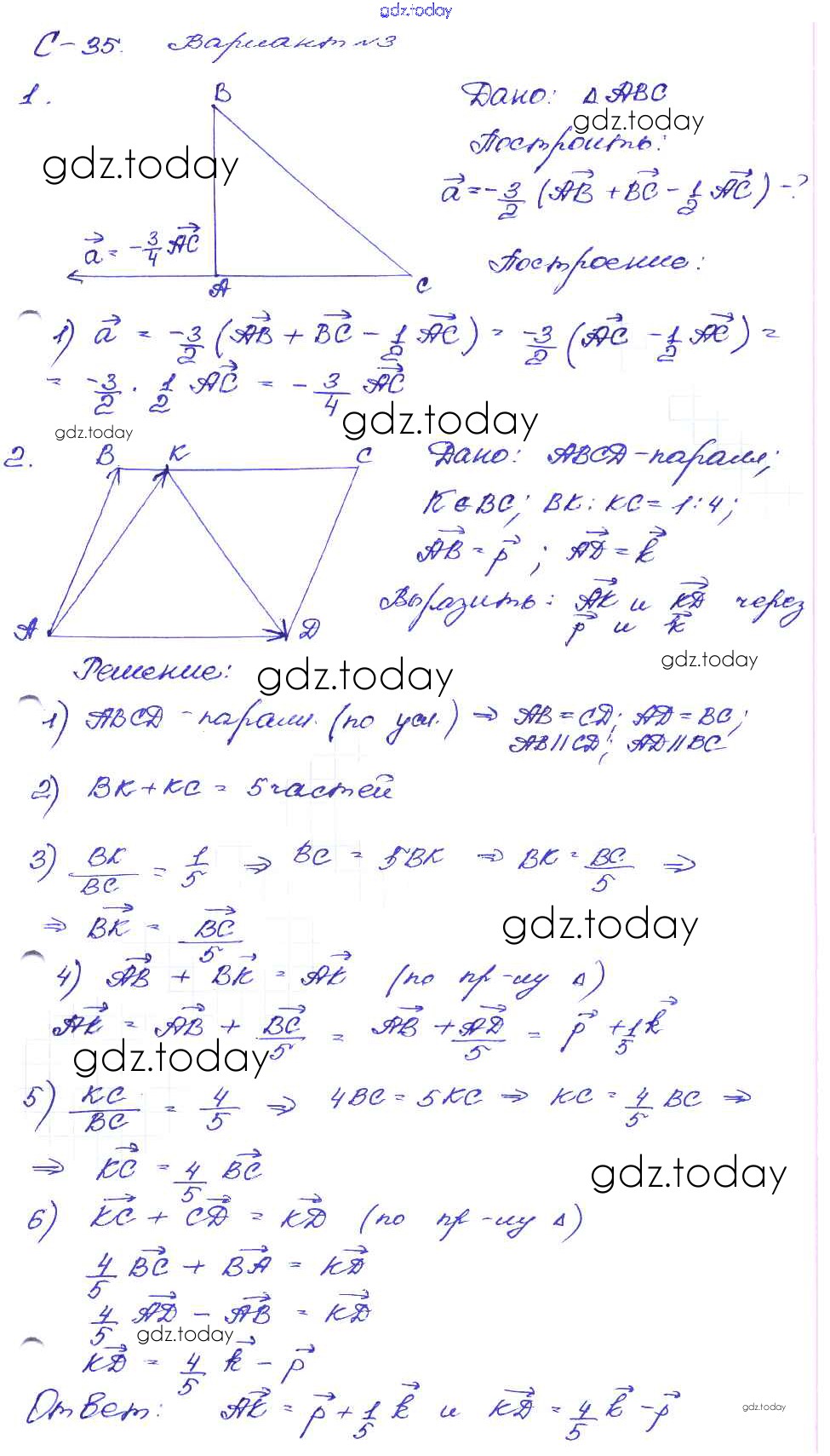 Ответы к СР №35. Умножение вектора на число Решение к самостоятельным работам вариант-3 Дидактическим материалам по Геометрии для 8 класса Зив, Мейлер Просвещение 2016