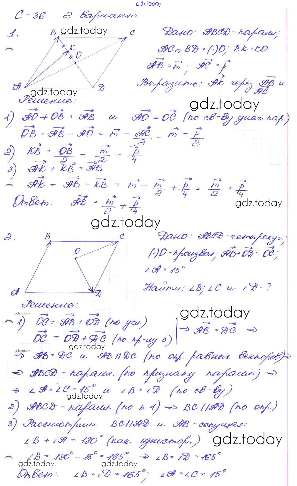 На страницах сайта gdz.today вы найдете учебный и вспомогательный материал, направленный на улучшения знаний школьной программы. ГДЗ - онлайн мир знаний СР №36. Применение векторов к решению задач Решение к самостоятельным работам вариант-2 Дидактическим материалам по Геометрии для 8 класса Зив, Мейлер Просвещение 2016