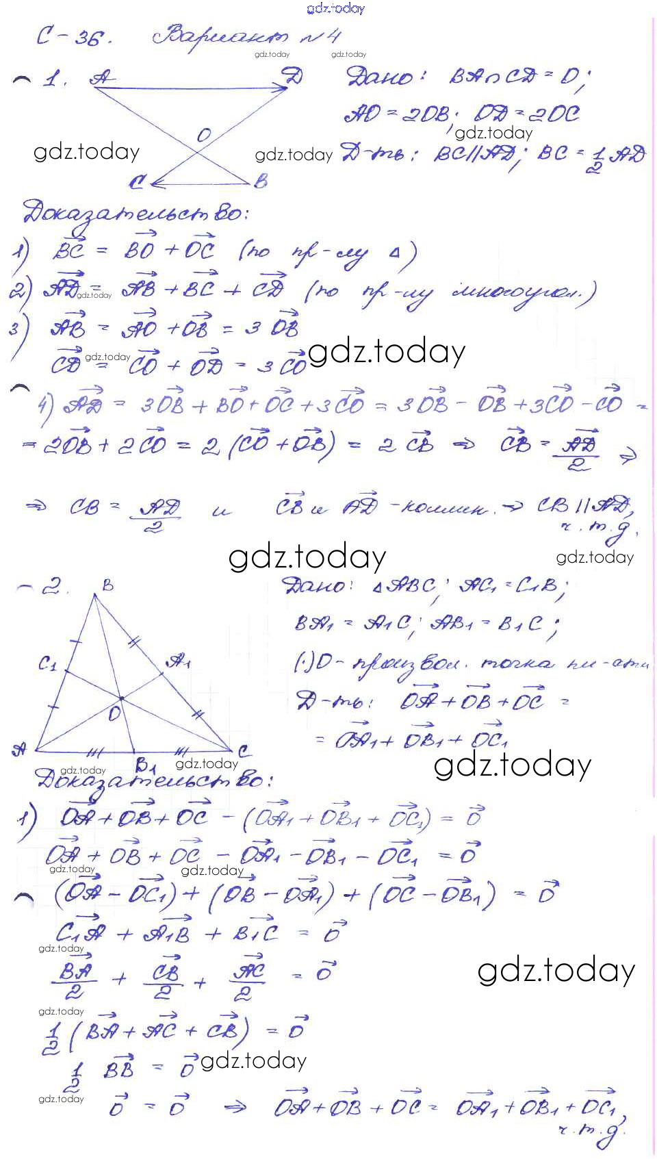Ответы к СР №36. Применение векторов к решению задач Решение к самостоятельным работам вариант-4 Дидактическим материалам по Геометрии для 8 класса Зив, Мейлер Просвещение 2016
