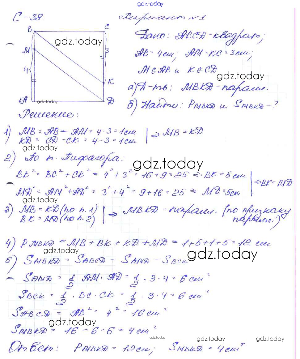Ответы к СР №38. Итоговое повторение Решение к самостоятельным работам вариант-1 Дидактическим материалам по Геометрии для 8 класса Зив, Мейлер Просвещение 2016