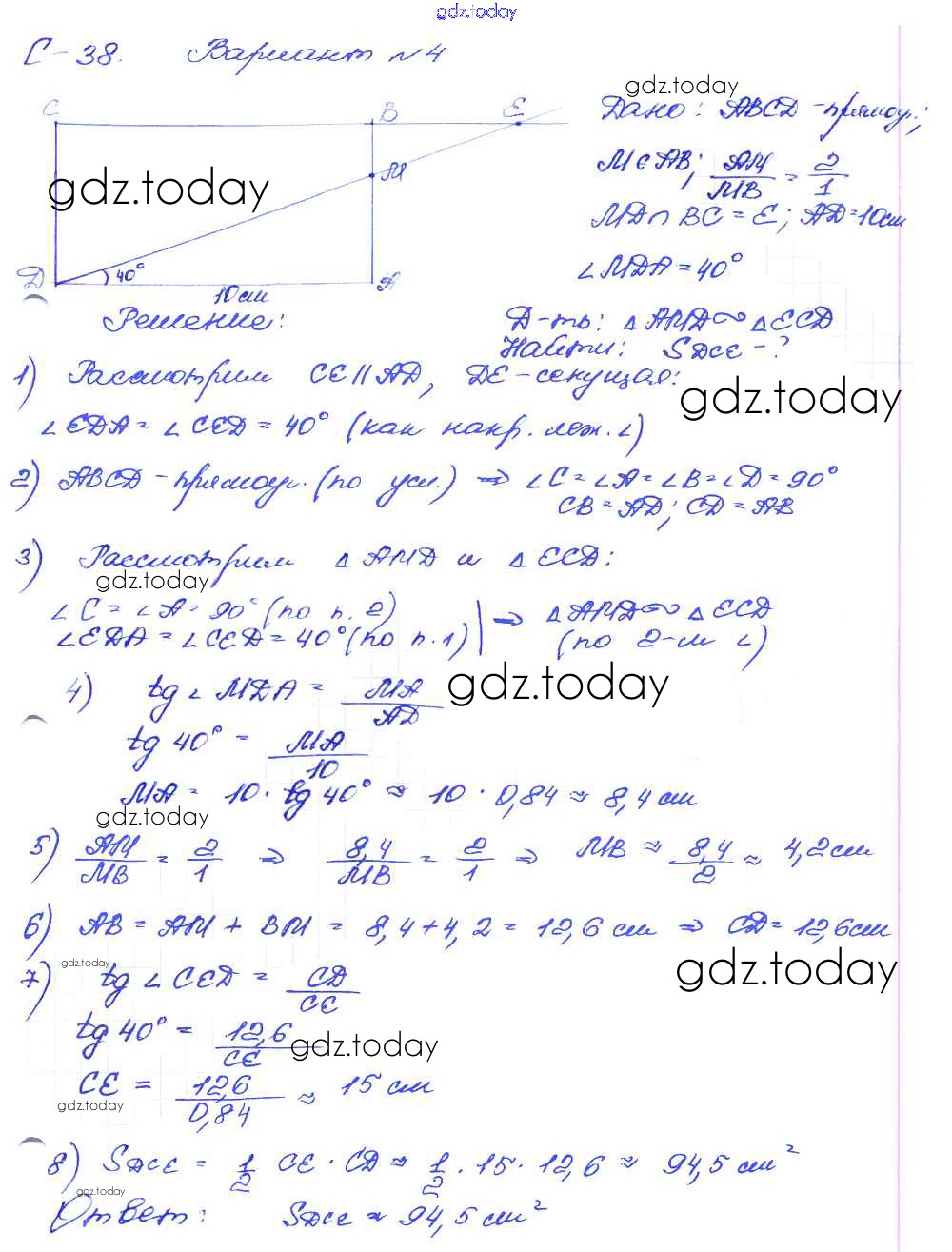 Ответы к СР №38. Итоговое повторение Решение к самостоятельным работам вариант-4 Дидактическим материалам по Геометрии для 8 класса Зив, Мейлер Просвещение 2016