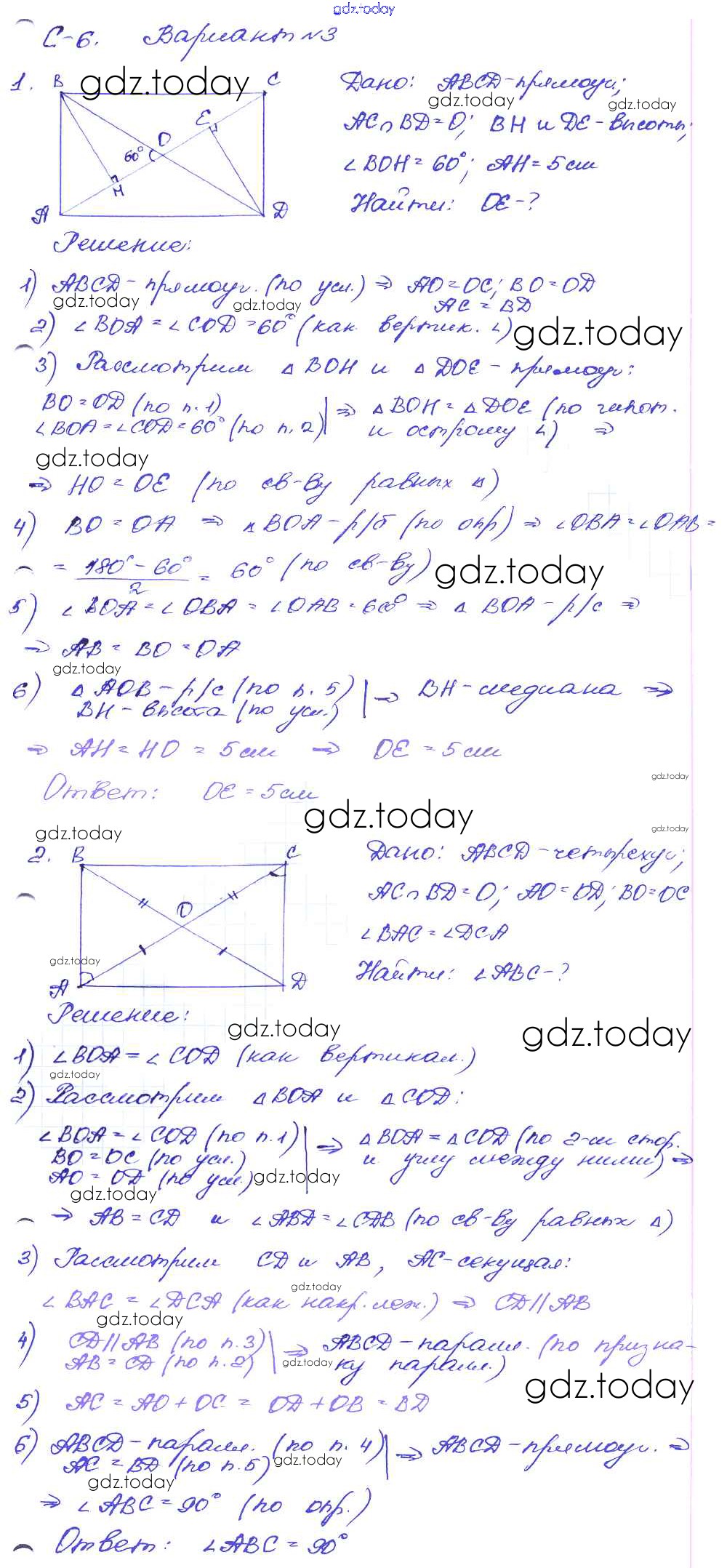 На страницах сайта gdz.today вы найдете учебный и вспомогательный материал, направленный на улучшения знаний школьной программы. ГДЗ - онлайн мир знаний СР №6. Прямоугольник Решение к самостоятельным работам вариант-3 Дидактическим материалам по Геометрии для 8 класса Зив, Мейлер Просвещение 2016