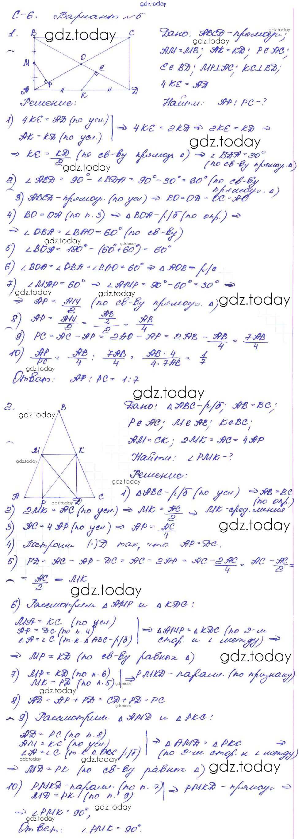 Ответы к СР №6. Прямоугольник Решение к самостоятельным работам вариант-5 Дидактическим материалам по Геометрии для 8 класса Зив, Мейлер Просвещение 2016
