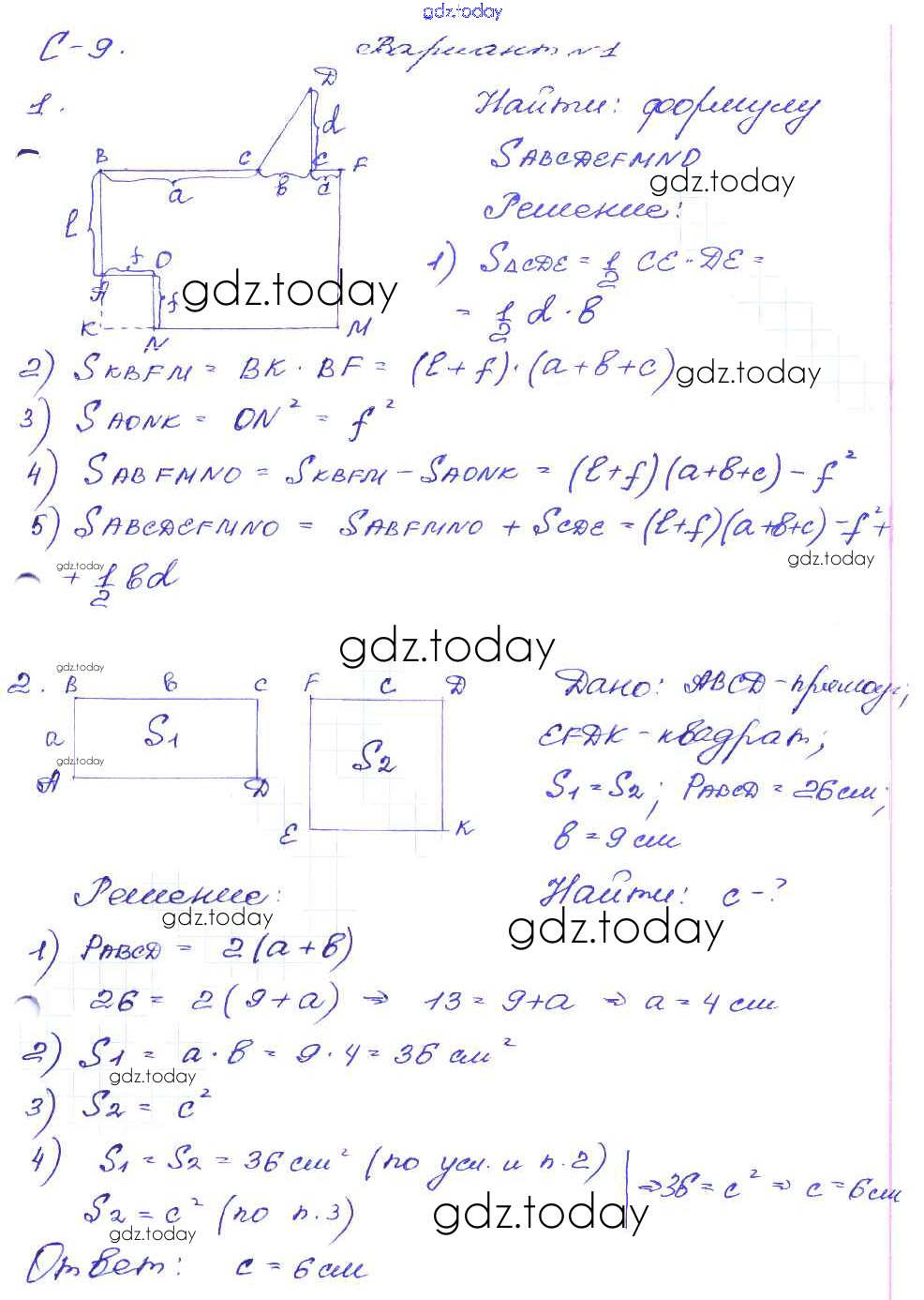 На страницах сайта gdz.today вы найдете учебный и вспомогательный материал, направленный на улучшения знаний школьной программы. ГДЗ - онлайн мир знаний СР №9. Свойства площадей многоугольников, квадрата и прямоугольника Решение к самостоятельным работам вариант-1 Дидактическим материалам по Геометрии для 8 класса Зив, Мейлер Просвещение 2016
