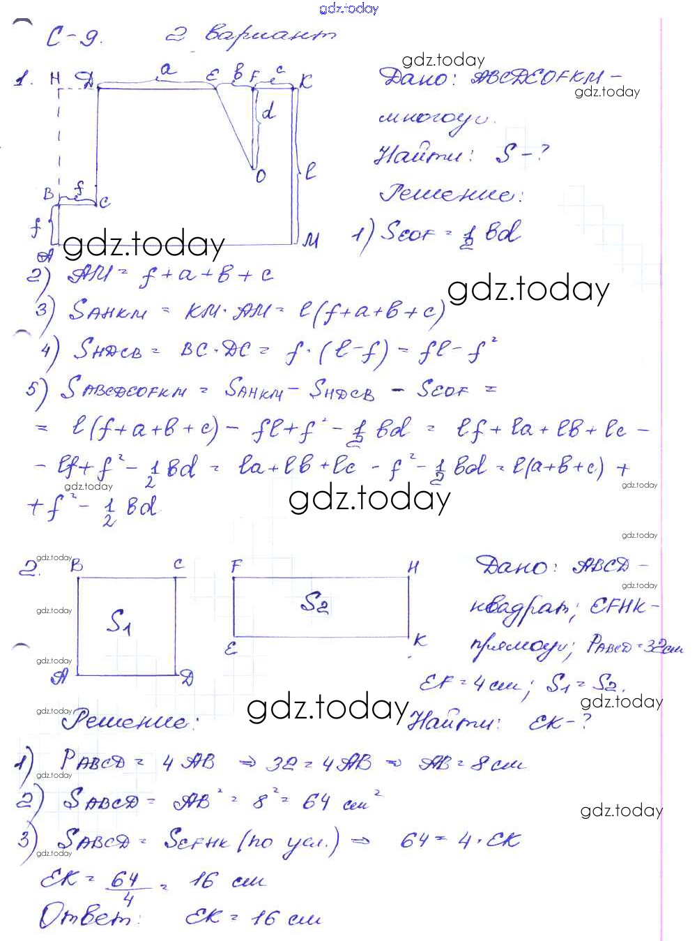 На страницах сайта gdz.today вы найдете учебный и вспомогательный материал, направленный на улучшения знаний школьной программы. ГДЗ - онлайн мир знаний СР №9. Свойства площадей многоугольников, квадрата и прямоугольника Решение к самостоятельным работам вариант-2 Дидактическим материалам по Геометрии для 8 класса Зив, Мейлер Просвещение 2016