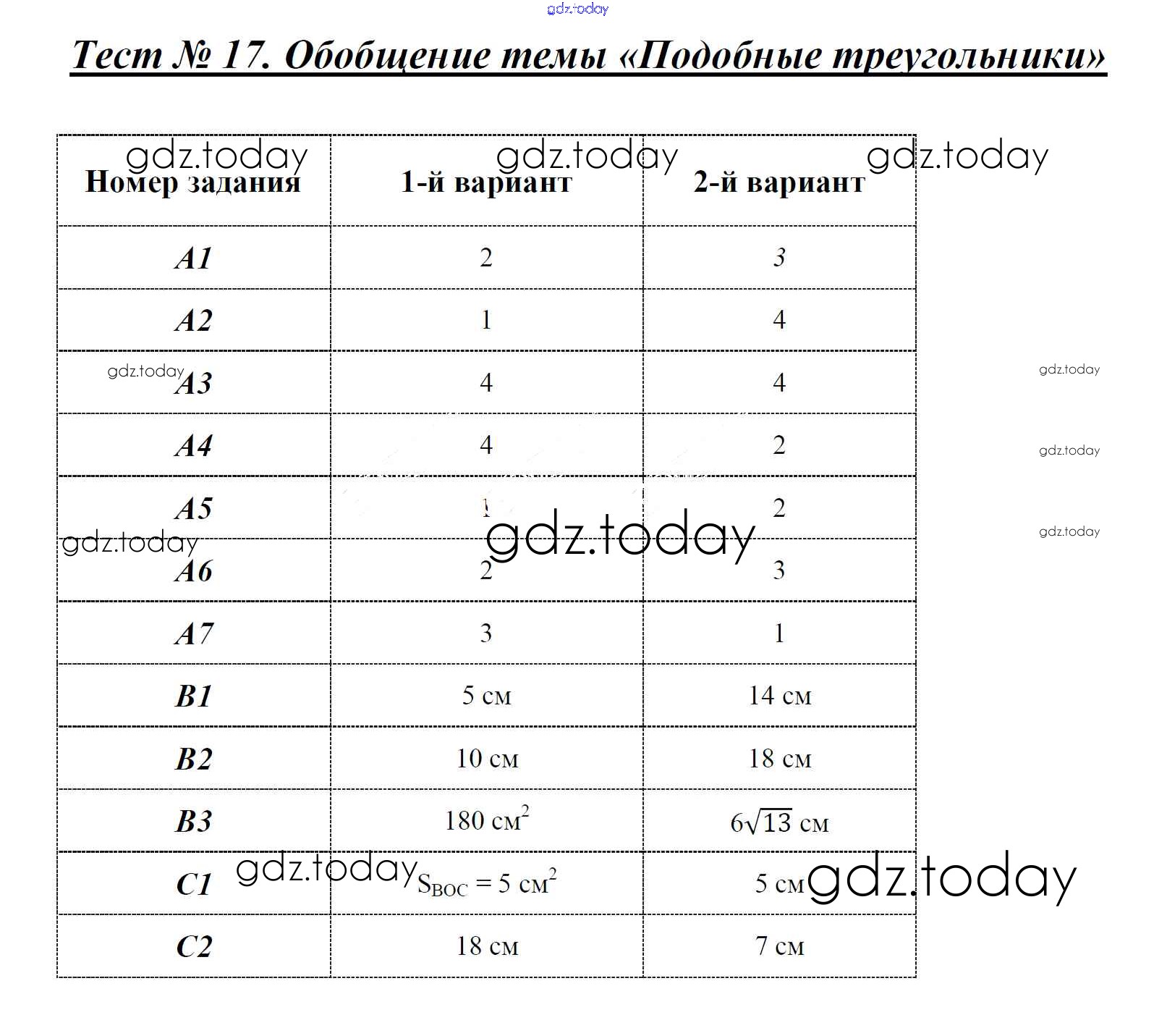 На страницах сайта gdz.today вы найдете учебный и вспомогательный материал, направленный на улучшения знаний школьной программы. ГДЗ - онлайн мир знаний Решение к тестам 17 Контрольно-измерительным материалам (КИМ) по Геометрии для 8 класса Гаврилова ВАКО 2018
