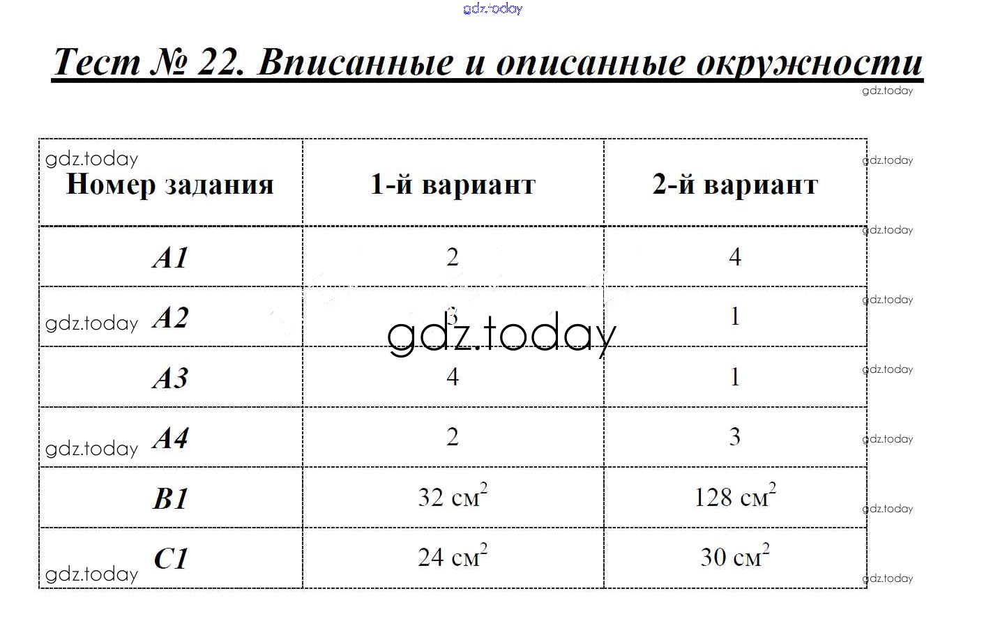 На страницах сайта gdz.today вы найдете учебный и вспомогательный материал, направленный на улучшения знаний школьной программы. ГДЗ - онлайн мир знаний Решение к тестам 22 Контрольно-измерительным материалам (КИМ) по Геометрии для 8 класса Гаврилова ВАКО 2018