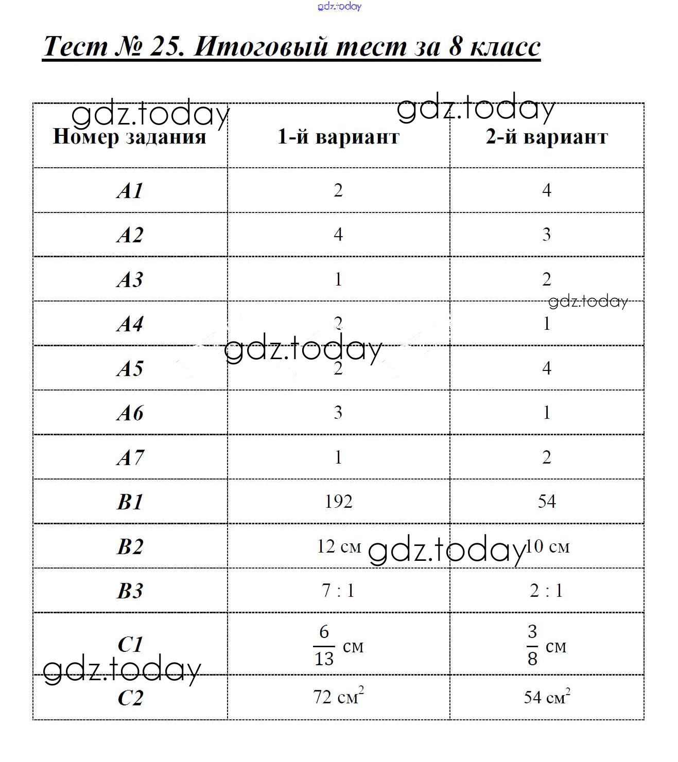 На страницах сайта gdz.today вы найдете учебный и вспомогательный материал, направленный на улучшения знаний школьной программы. ГДЗ - онлайн мир знаний Решение к тестам 25 Контрольно-измерительным материалам (КИМ) по Геометрии для 8 класса Гаврилова ВАКО 2018