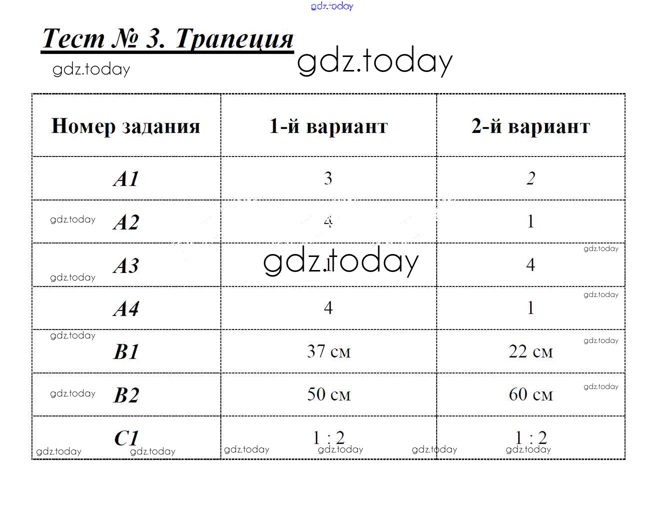 На страницах сайта gdz.today вы найдете учебный и вспомогательный материал, направленный на улучшения знаний школьной программы. ГДЗ - онлайн мир знаний Решение к тестам 3 Контрольно-измерительным материалам (КИМ) по Геометрии для 8 класса Гаврилова ВАКО 2018
