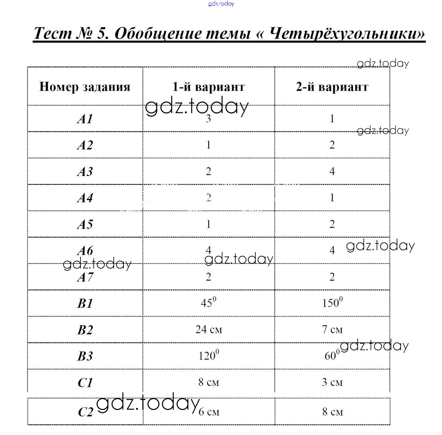 На страницах сайта gdz.today вы найдете учебный и вспомогательный материал, направленный на улучшения знаний школьной программы. ГДЗ - онлайн мир знаний Решение к тестам 5 Контрольно-измерительным материалам (КИМ) по Геометрии для 8 класса Гаврилова ВАКО 2018