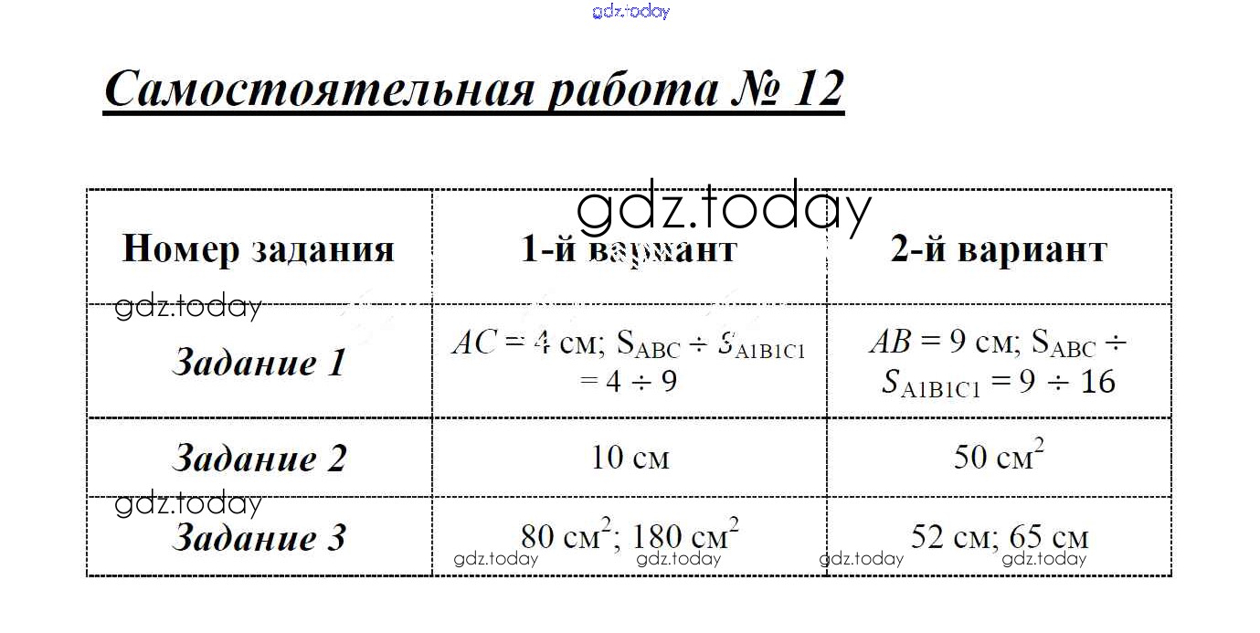 Ответы к Решение к самостоятельным работам 12 Контрольно-измерительным материалам (КИМ) по Геометрии для 8 класса Гаврилова ВАКО 2018