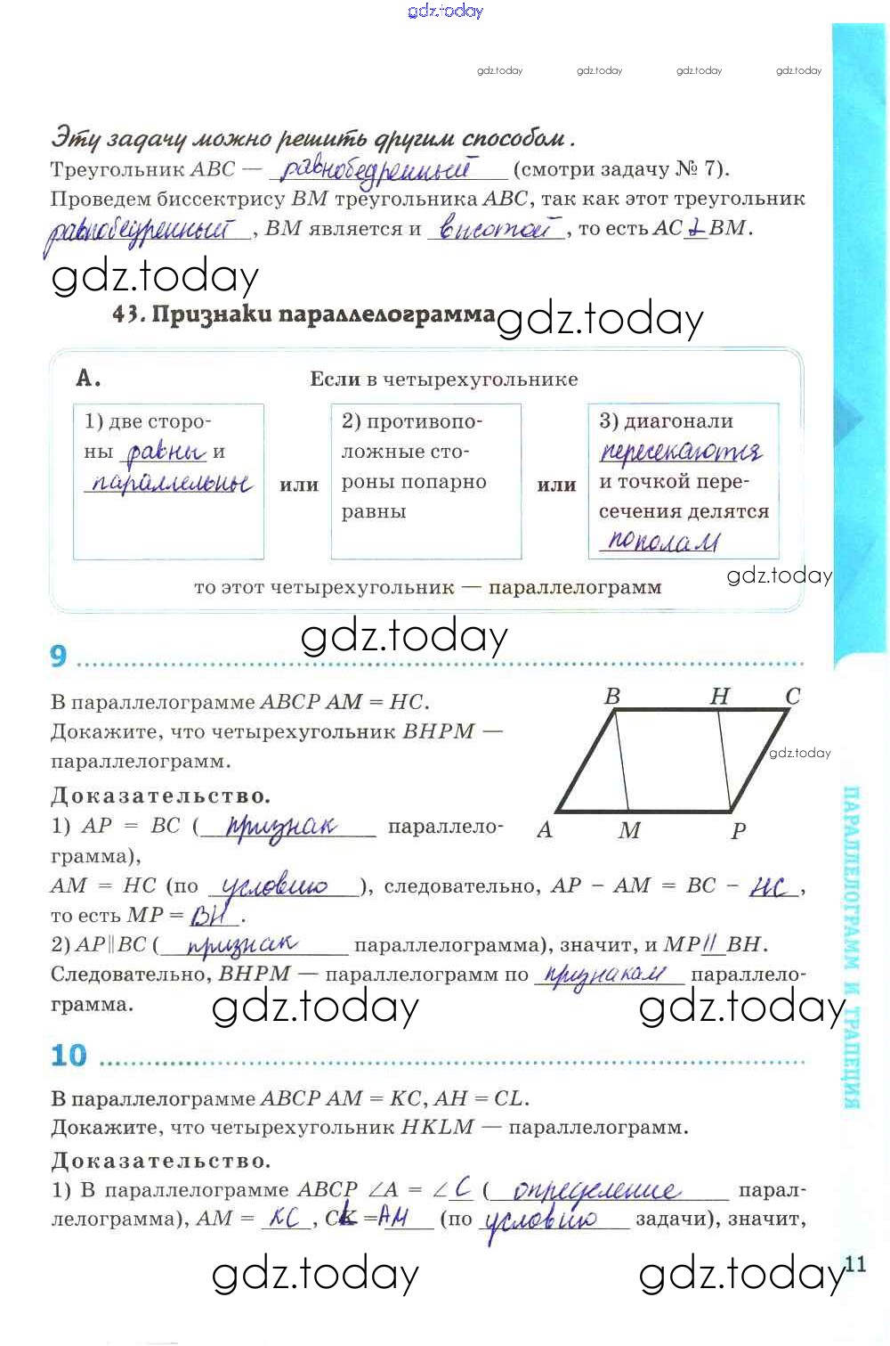 Ответы к Решение к главе V. Четырехугольники стр. 11 Рабочей тетради по Геометрии для 8 класса Глазков, Камаев Экзамен УМК 2017