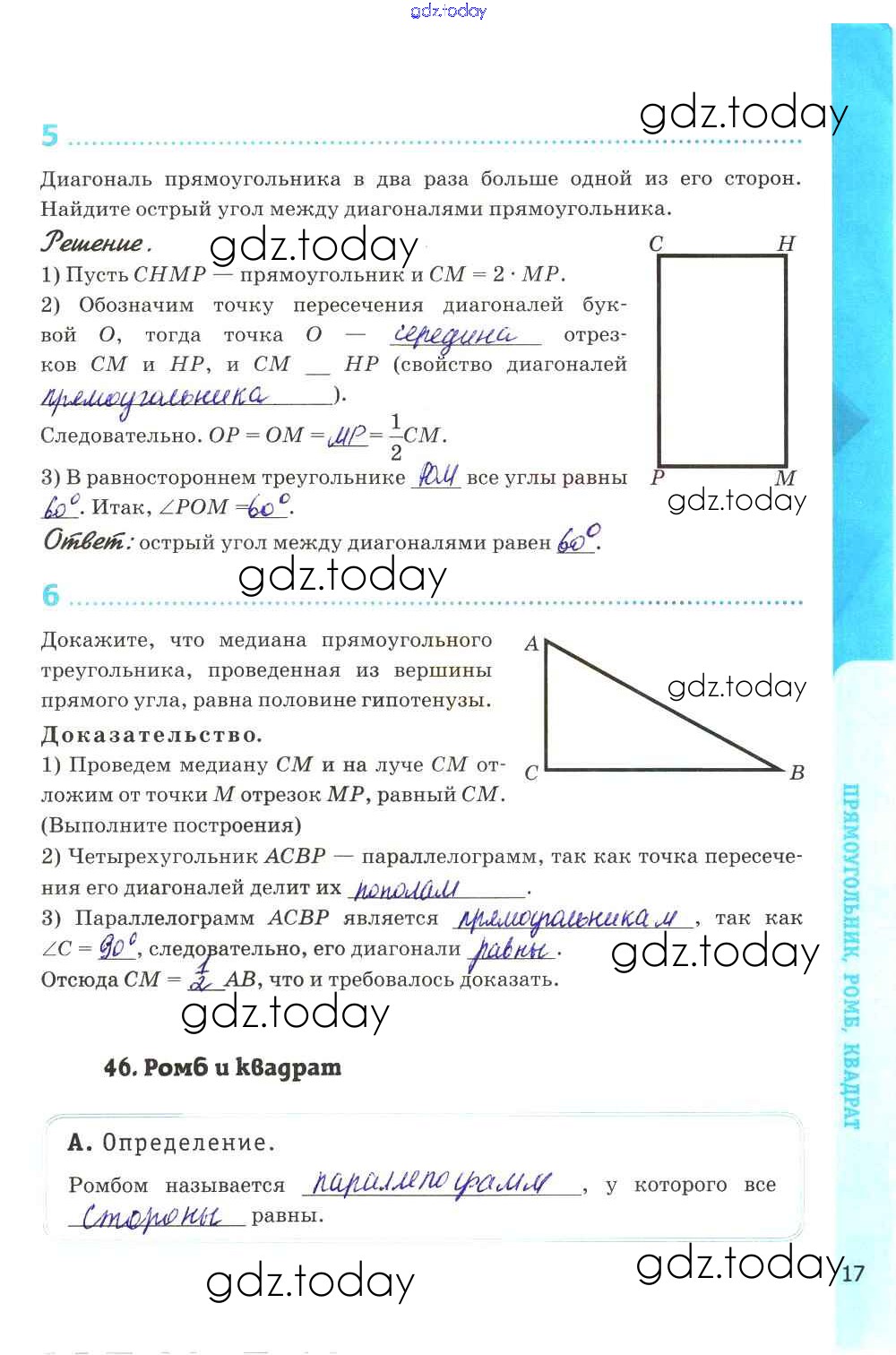 Ответы к Решение к главе V. Четырехугольники стр. 17 Рабочей тетради по Геометрии для 8 класса Глазков, Камаев Экзамен УМК 2017