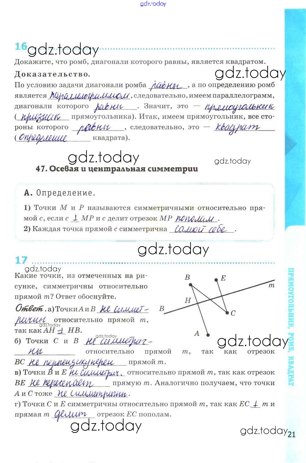 Ответы к Решение к главе V. Четырехугольники стр. 21 Рабочей тетради по Геометрии для 8 класса Глазков, Камаев Экзамен УМК 2017