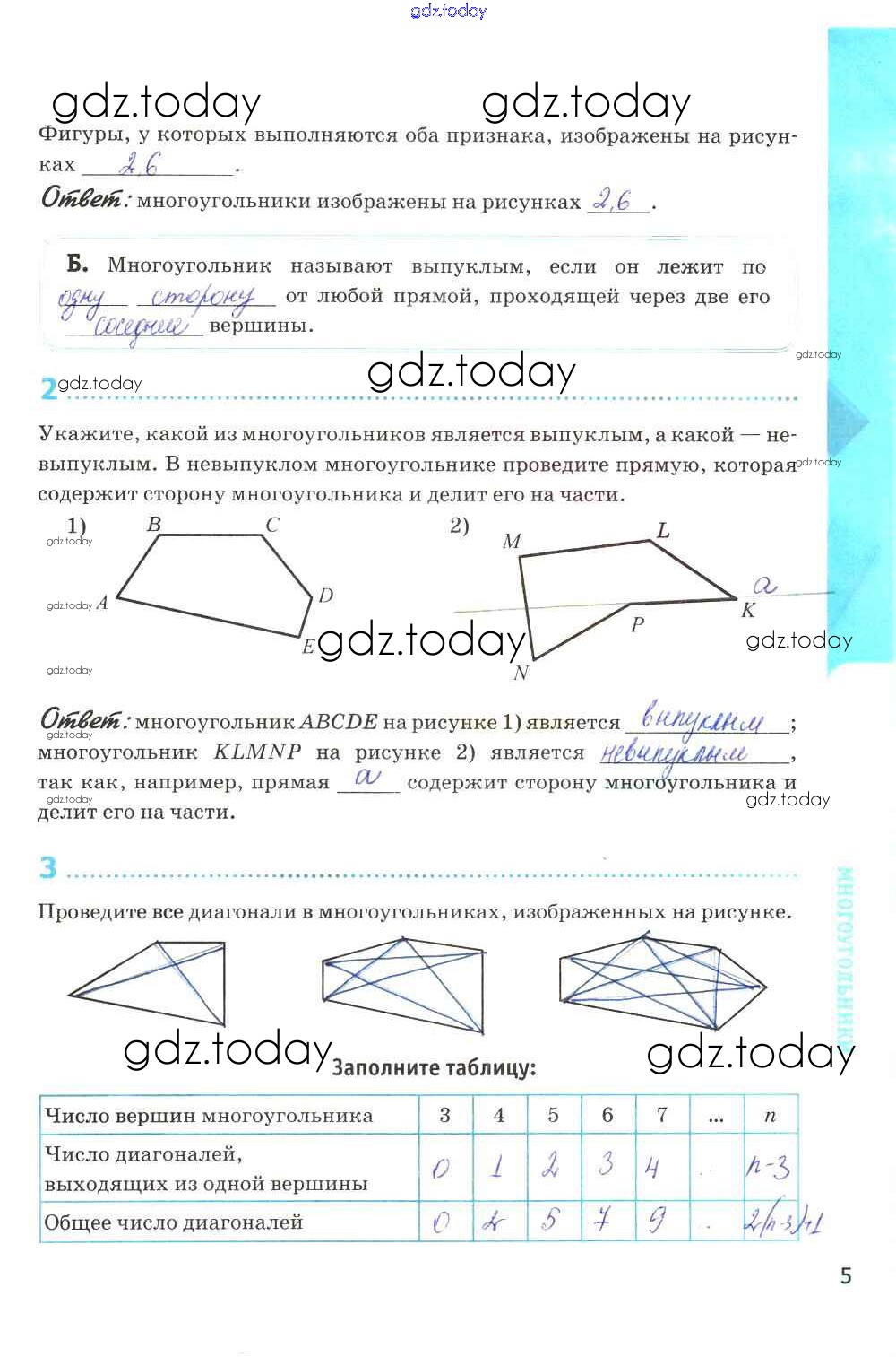 Ответы к Решение к главе V. Четырехугольники стр. 5 Рабочей тетради по Геометрии для 8 класса Глазков, Камаев Экзамен УМК 2017