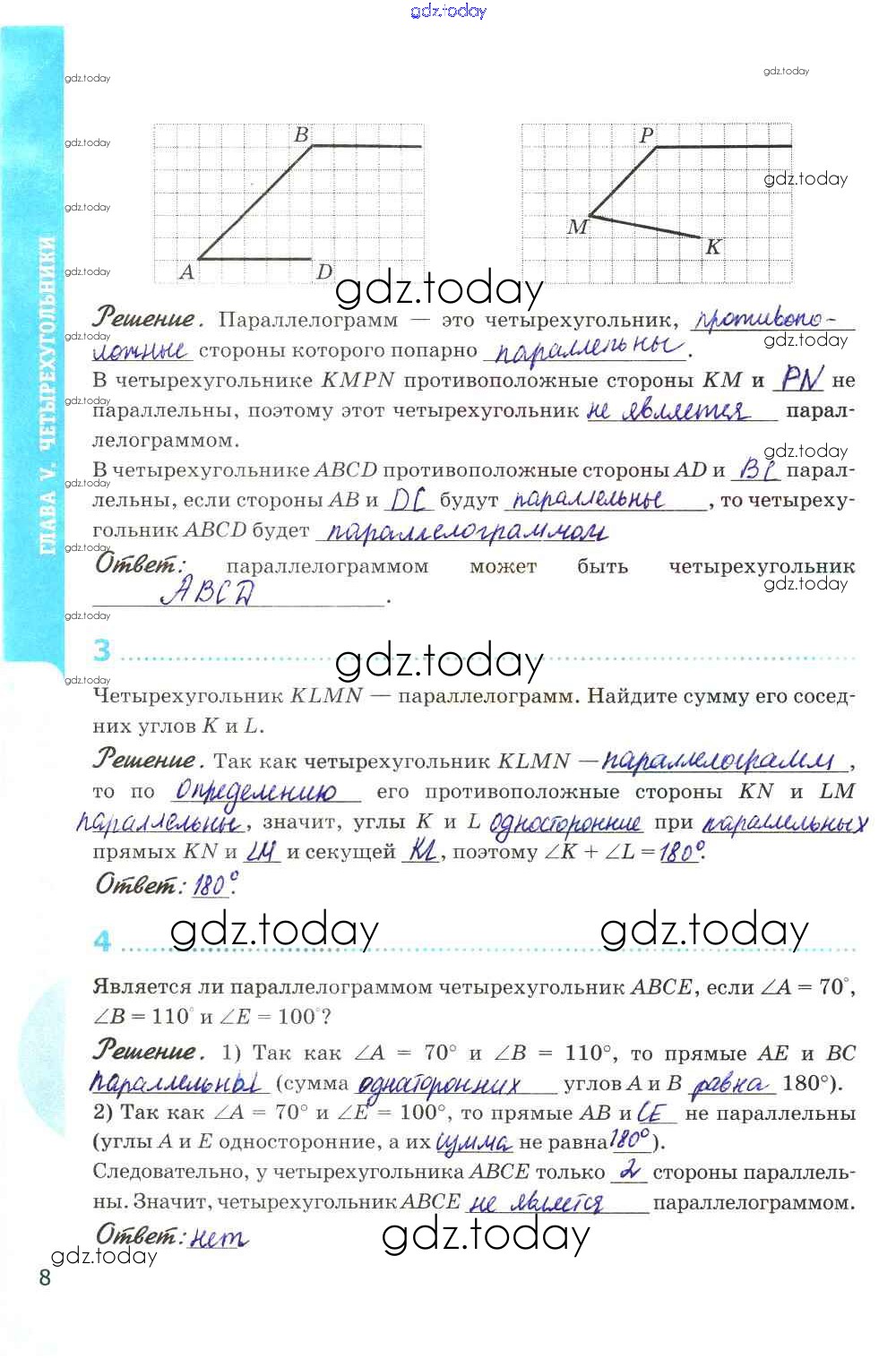 Ответы к Решение к главе V. Четырехугольники стр. 8 Рабочей тетради по Геометрии для 8 класса Глазков, Камаев Экзамен УМК 2017