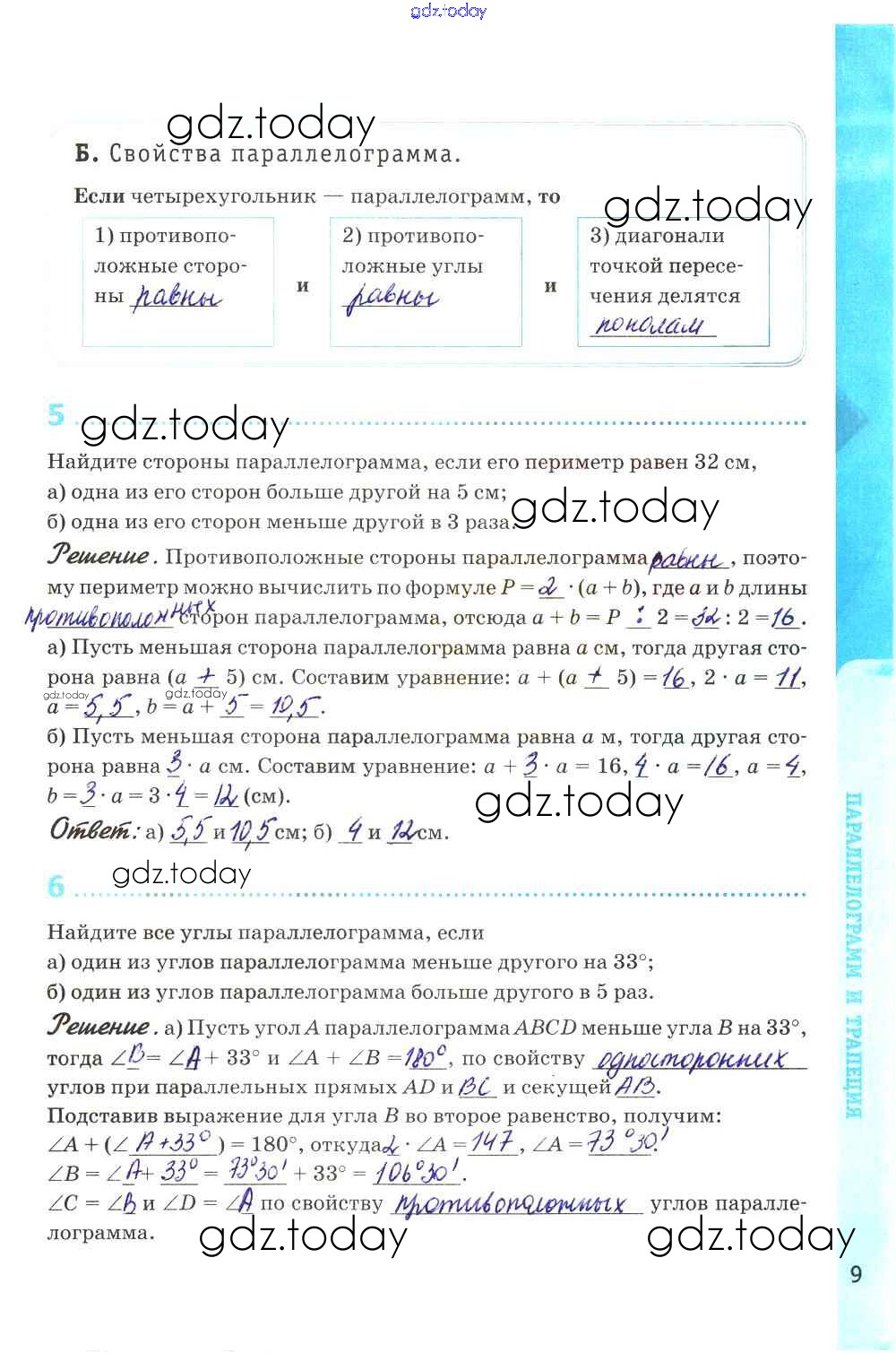 Ответы к Решение к главе V. Четырехугольники стр. 9 Рабочей тетради по Геометрии для 8 класса Глазков, Камаев Экзамен УМК 2017