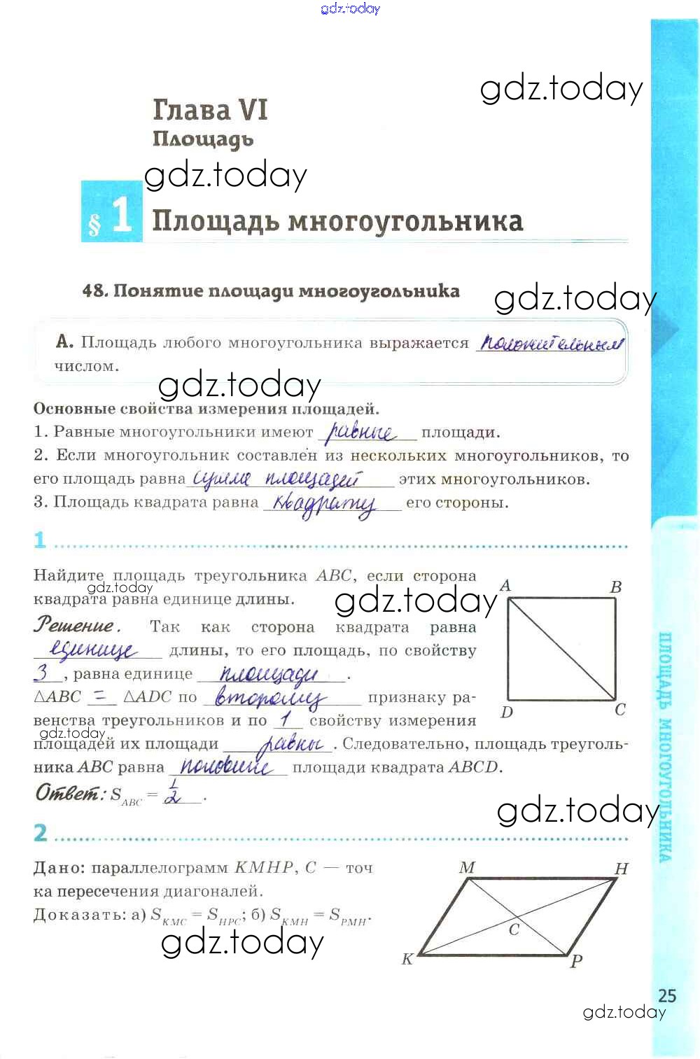Ответы к Решение к главе VI. Площадь стр. 25 Рабочей тетради по Геометрии для 8 класса Глазков, Камаев Экзамен УМК 2017
