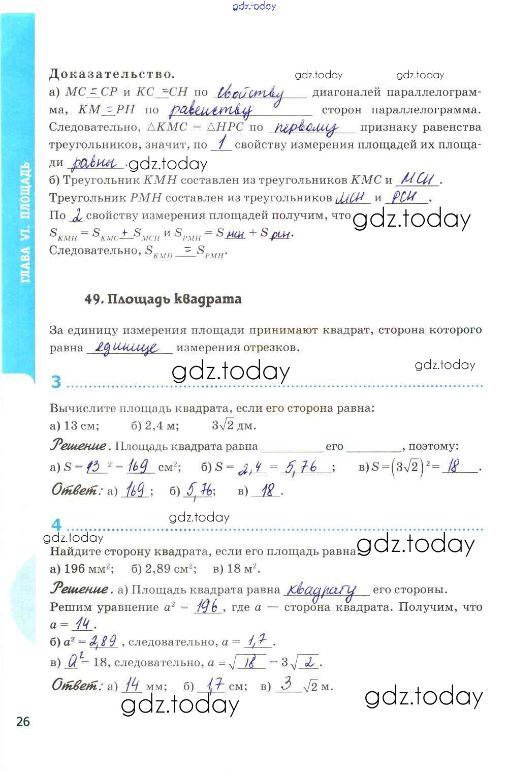 Ответы к Решение к главе VI. Площадь стр. 26 Рабочей тетради по Геометрии для 8 класса Глазков, Камаев Экзамен УМК 2017