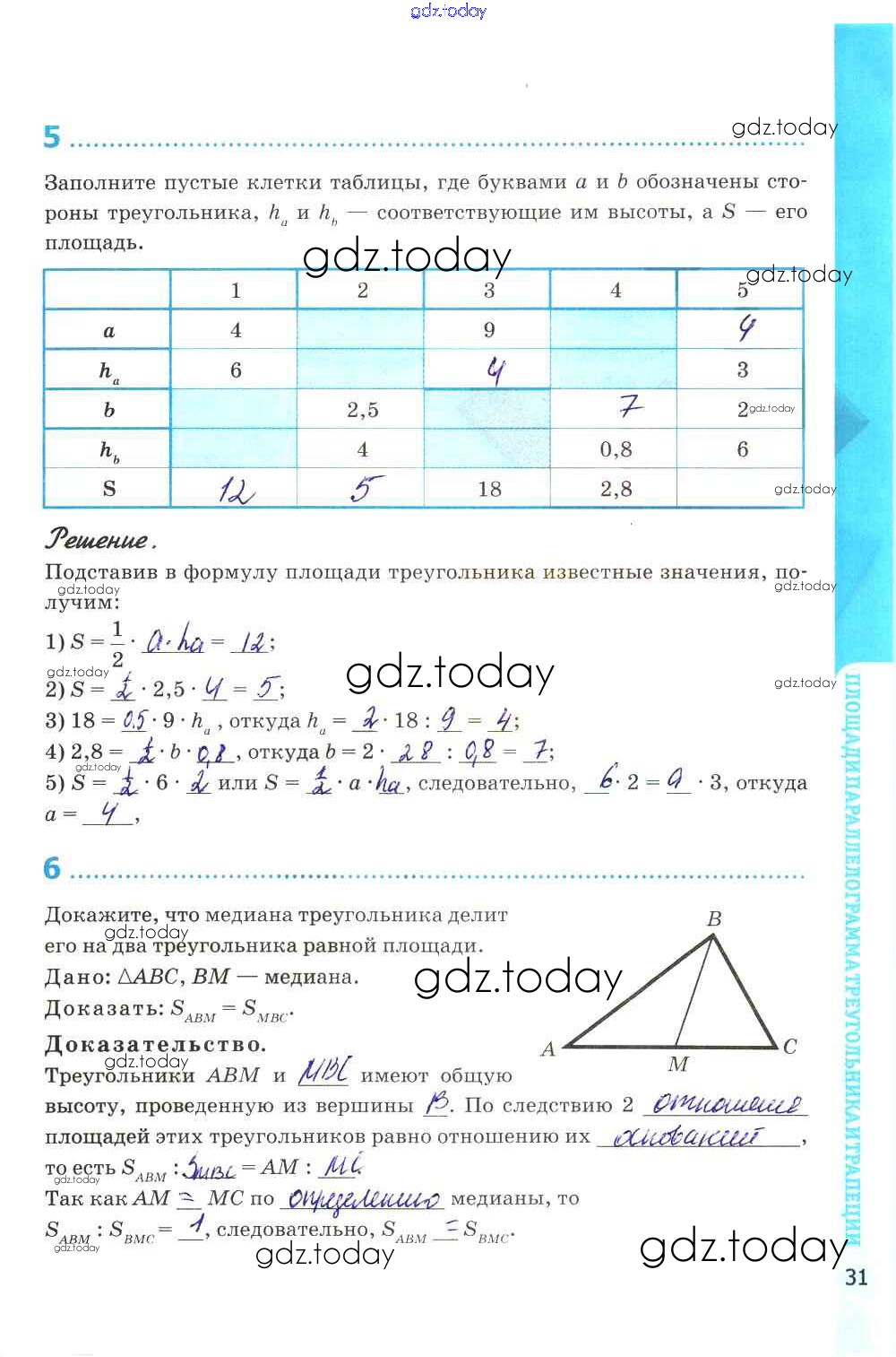 Ответы к Решение к главе VI. Площадь стр. 31 Рабочей тетради по Геометрии для 8 класса Глазков, Камаев Экзамен УМК 2017