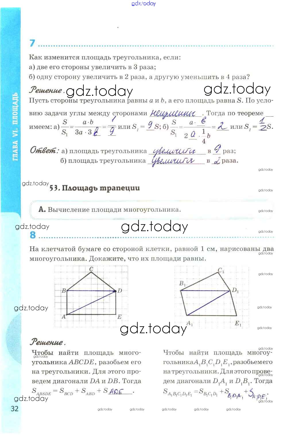 Ответы к Решение к главе VI. Площадь стр. 32 Рабочей тетради по Геометрии для 8 класса Глазков, Камаев Экзамен УМК 2017