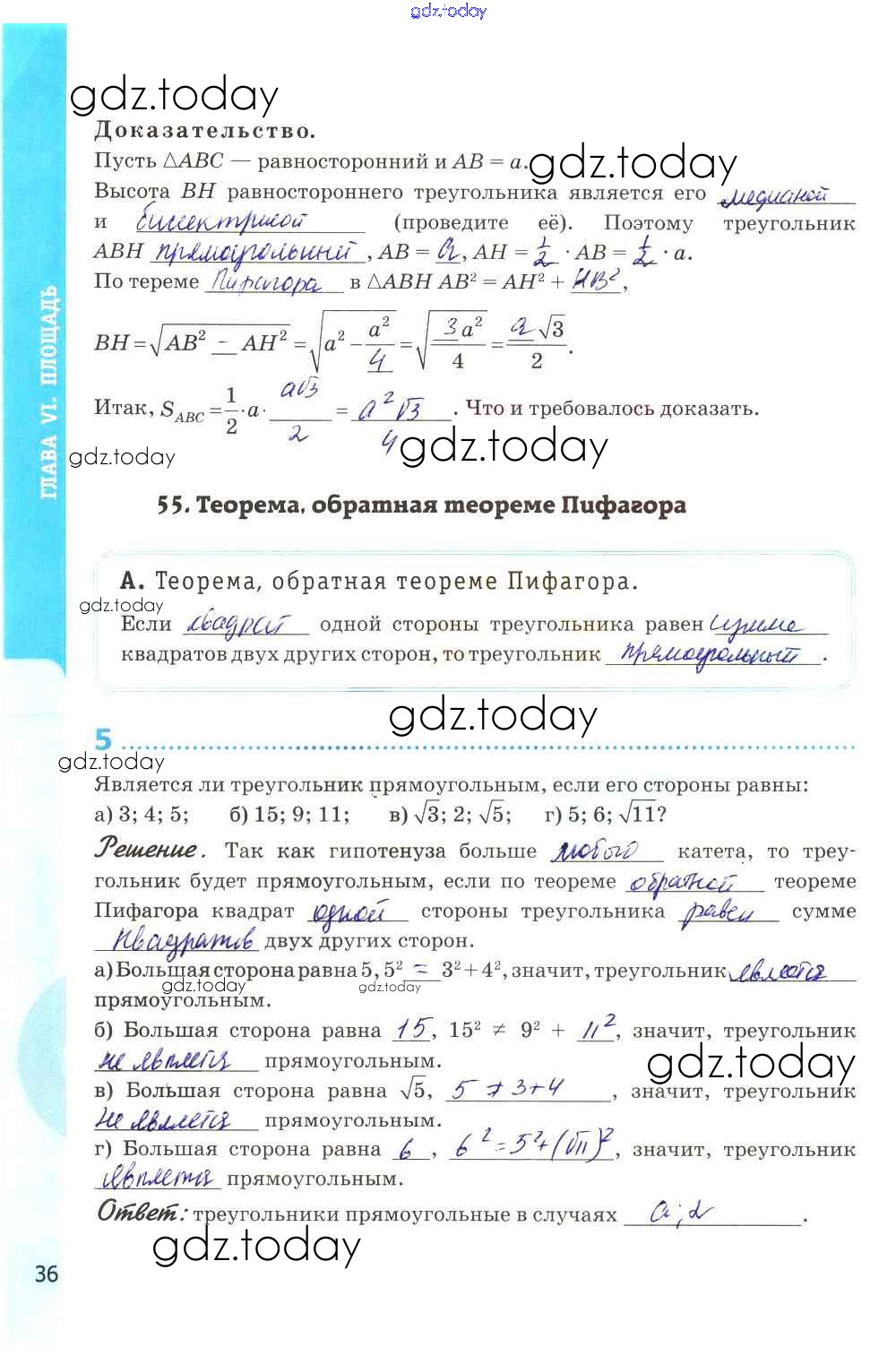 Ответы к Решение к главе VI. Площадь стр. 36 Рабочей тетради по Геометрии для 8 класса Глазков, Камаев Экзамен УМК 2017