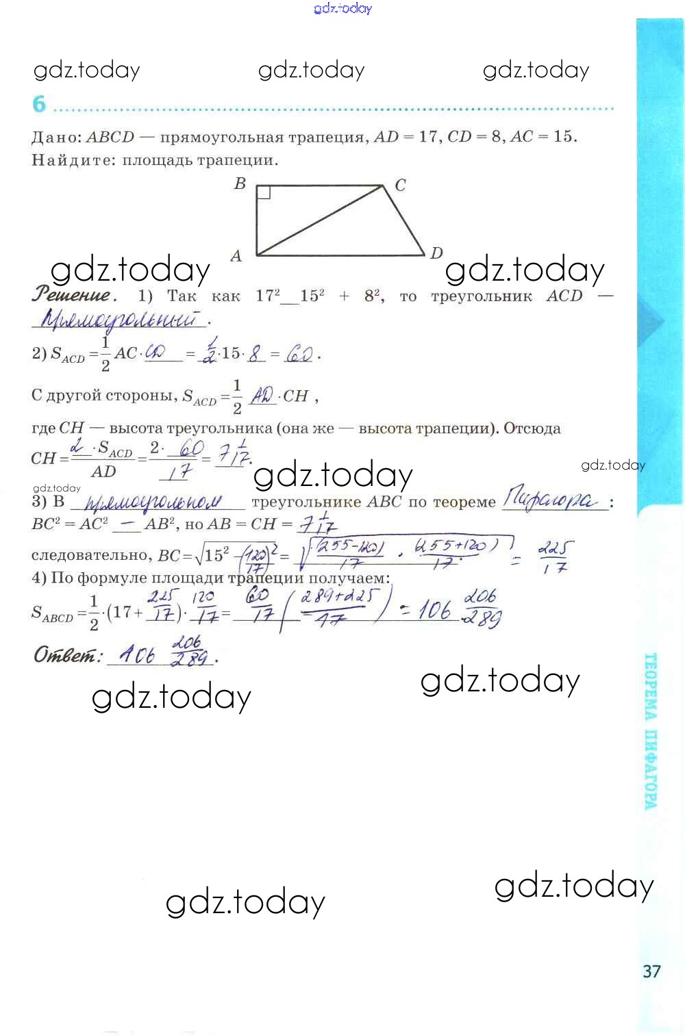 Ответы к Решение к главе VI. Площадь стр. 37 Рабочей тетради по Геометрии для 8 класса Глазков, Камаев Экзамен УМК 2017