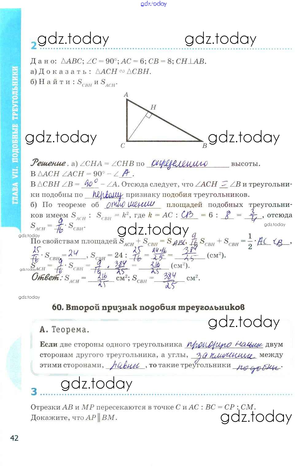 Ответы к Решение к главе VII. Подобные треугольники стр. 42 Рабочей тетради по Геометрии для 8 класса Глазков, Камаев Экзамен УМК 2017