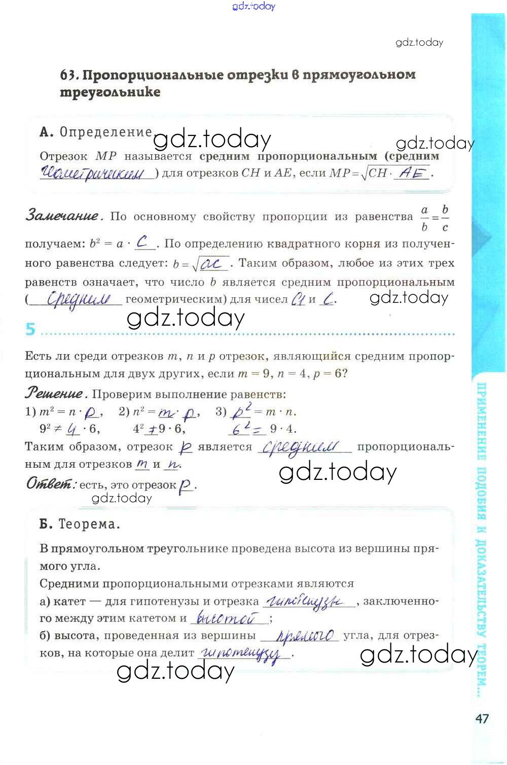 Ответы к Решение к главе VII. Подобные треугольники стр. 47 Рабочей тетради по Геометрии для 8 класса Глазков, Камаев Экзамен УМК 2017