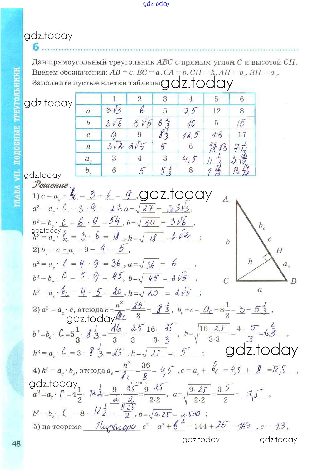 На страницах сайта gdz.today вы найдете учебный и вспомогательный материал, направленный на улучшения знаний школьной программы. ГДЗ - онлайн мир знаний Решение к главе VII. Подобные треугольники стр. 48 Рабочей тетради по Геометрии для 8 класса Глазков, Камаев Экзамен УМК 2017