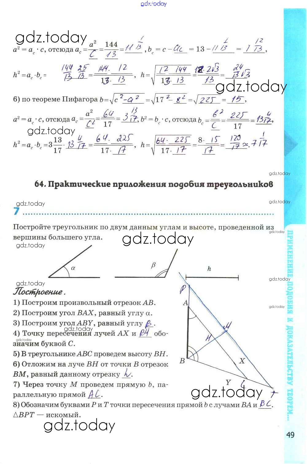 Ответы к Решение к главе VII. Подобные треугольники стр. 49 Рабочей тетради по Геометрии для 8 класса Глазков, Камаев Экзамен УМК 2017