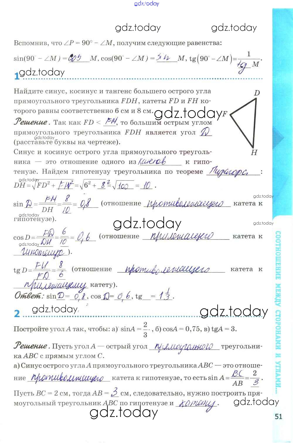 Ответы к Решение к главе VII. Подобные треугольники стр. 51 Рабочей тетради по Геометрии для 8 класса Глазков, Камаев Экзамен УМК 2017