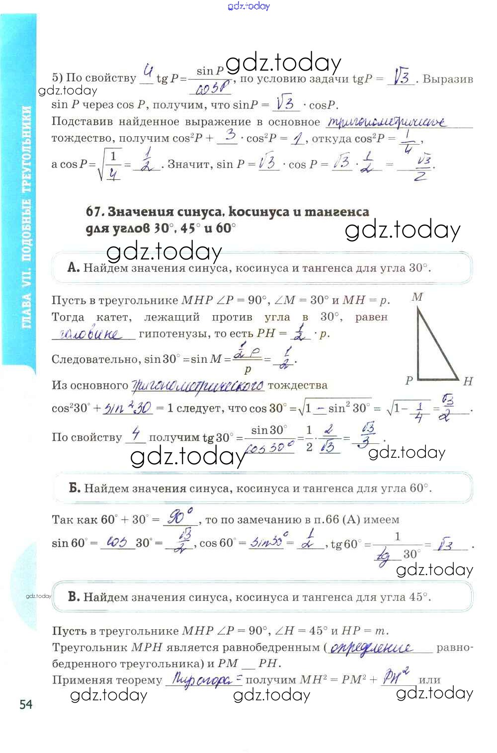 На страницах сайта gdz.today вы найдете учебный и вспомогательный материал, направленный на улучшения знаний школьной программы. ГДЗ - онлайн мир знаний Решение к главе VII. Подобные треугольники стр. 54 Рабочей тетради по Геометрии для 8 класса Глазков, Камаев Экзамен УМК 2017