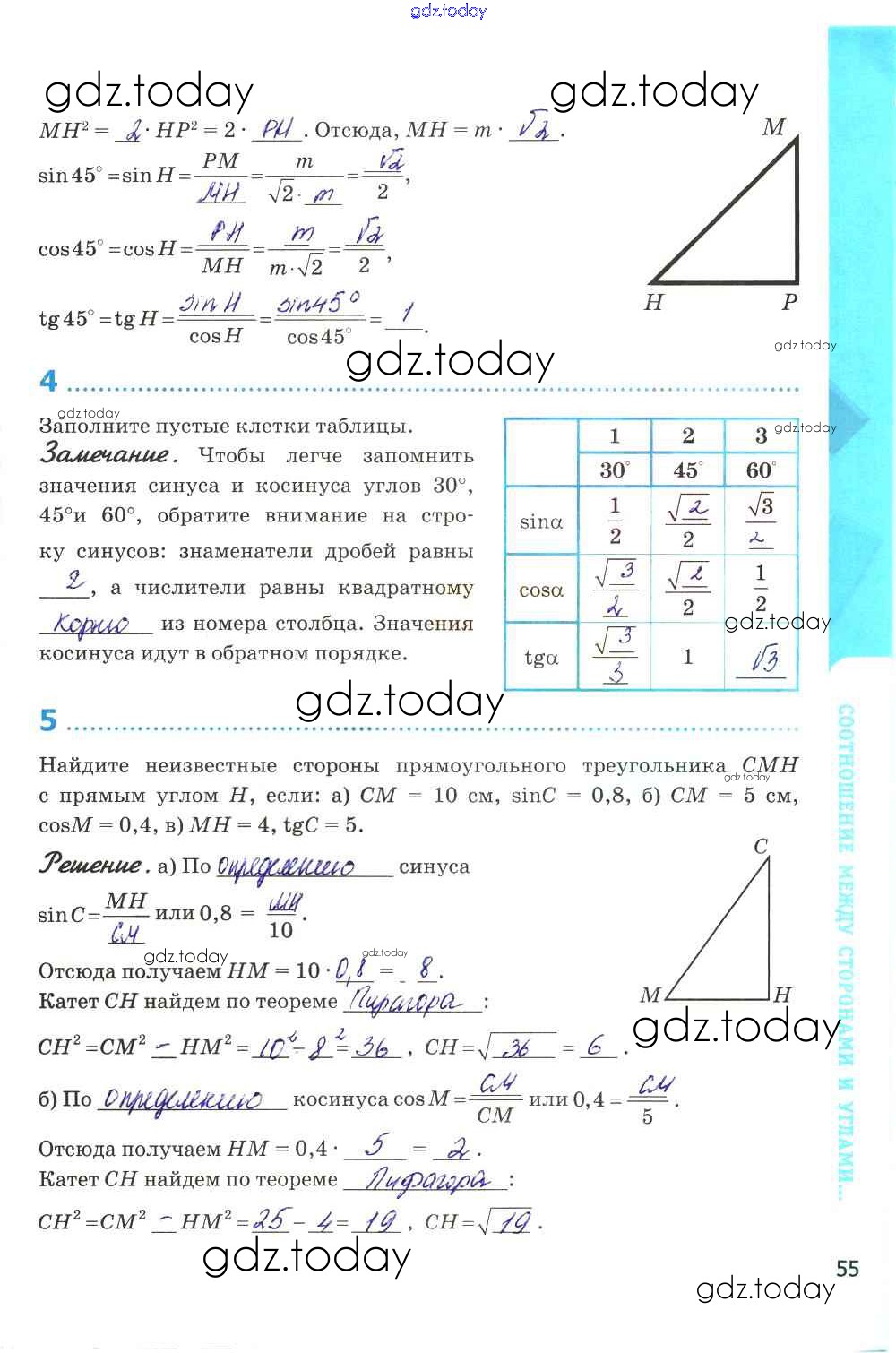 На страницах сайта gdz.today вы найдете учебный и вспомогательный материал, направленный на улучшения знаний школьной программы. ГДЗ - онлайн мир знаний Решение к главе VII. Подобные треугольники стр. 55 Рабочей тетради по Геометрии для 8 класса Глазков, Камаев Экзамен УМК 2017