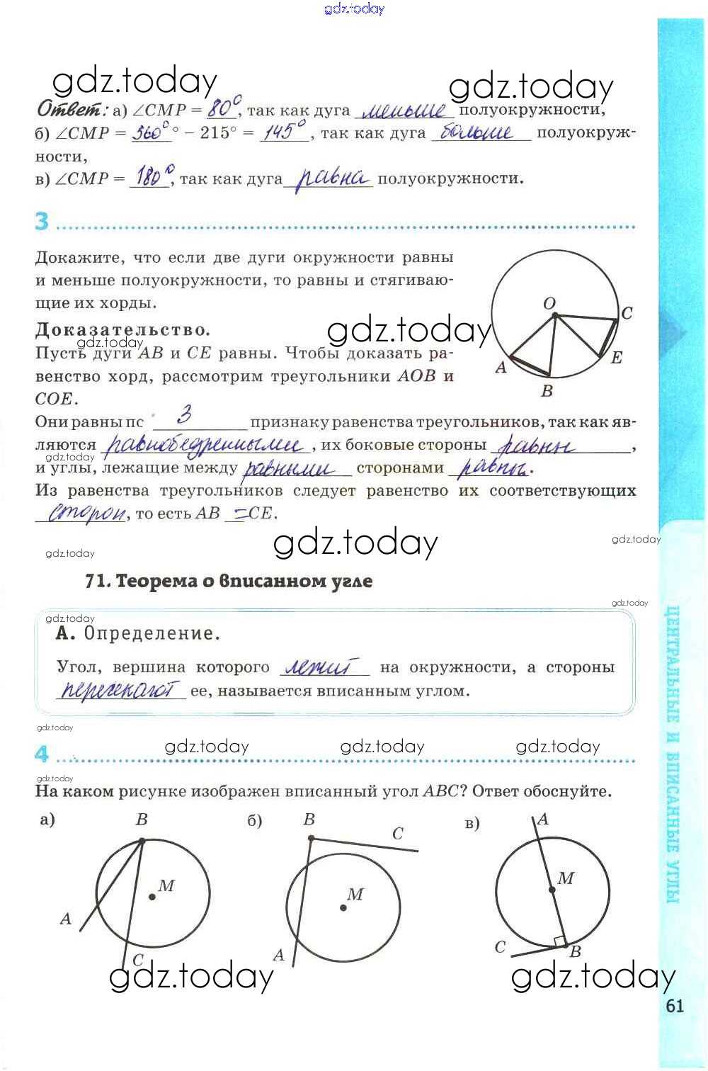Ответы к Решение к главе VIII. Окружность стр. 61 Рабочей тетради по Геометрии для 8 класса Глазков, Камаев Экзамен УМК 2017