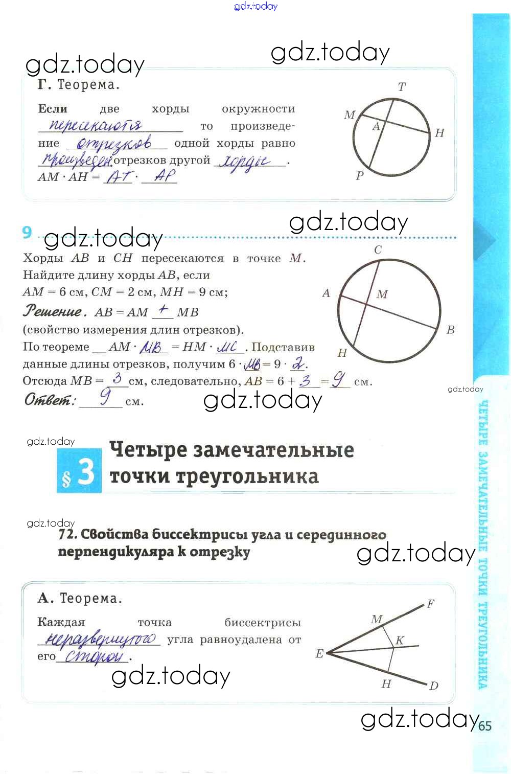 На страницах сайта gdz.today вы найдете учебный и вспомогательный материал, направленный на улучшения знаний школьной программы. ГДЗ - онлайн мир знаний Решение к главе VIII. Окружность стр. 65 Рабочей тетради по Геометрии для 8 класса Глазков, Камаев Экзамен УМК 2017